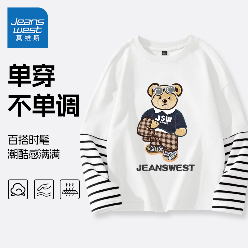 真维斯童装男童长袖t恤春秋款男大童秋季纯棉打底衫儿童秋装上衣