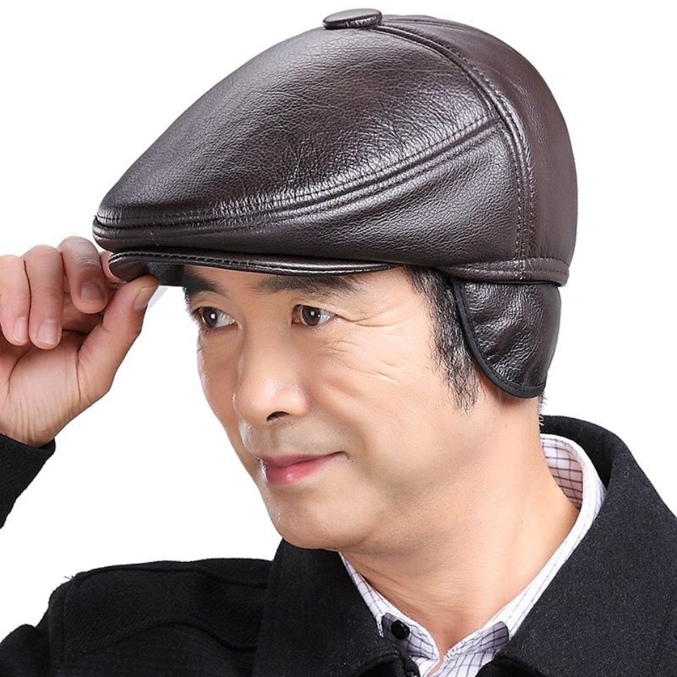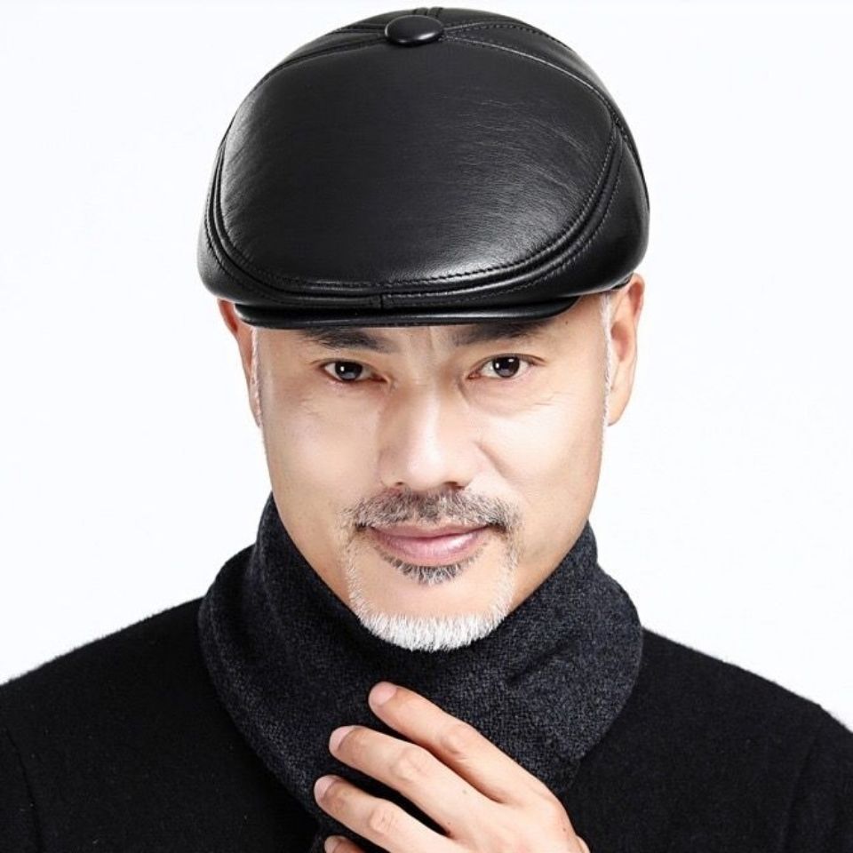 中老年人帽子男冬季保暖爸爸老人皮帽加绒加厚防风老头护耳鸭舌帽