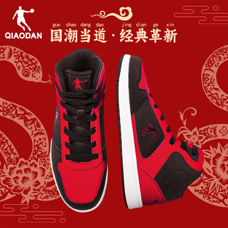 乔丹高帮板鞋男2026春季新款红色休闲鞋子空军一号厚底潮流运动鞋