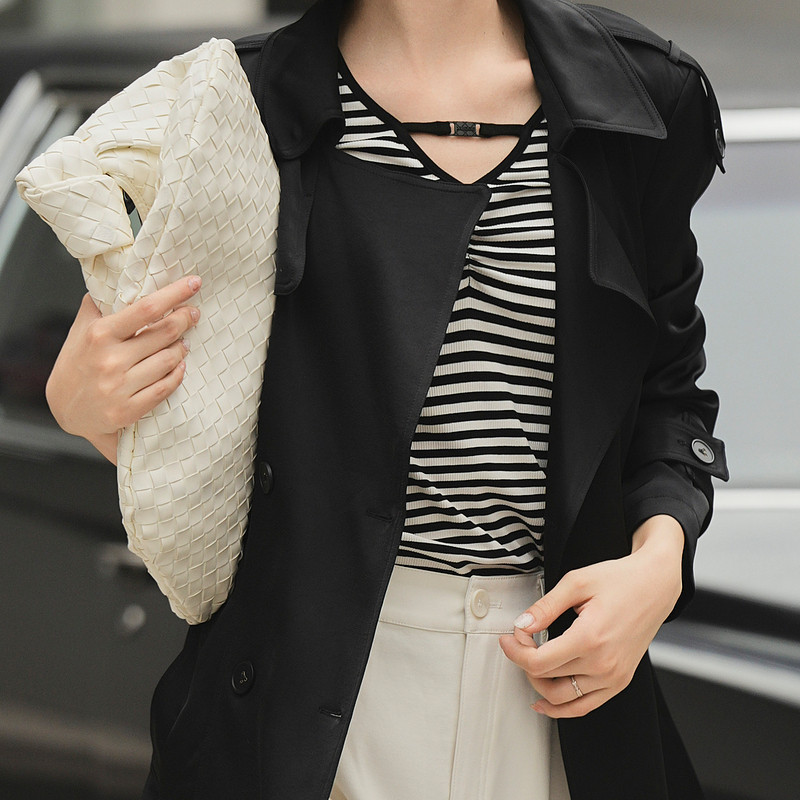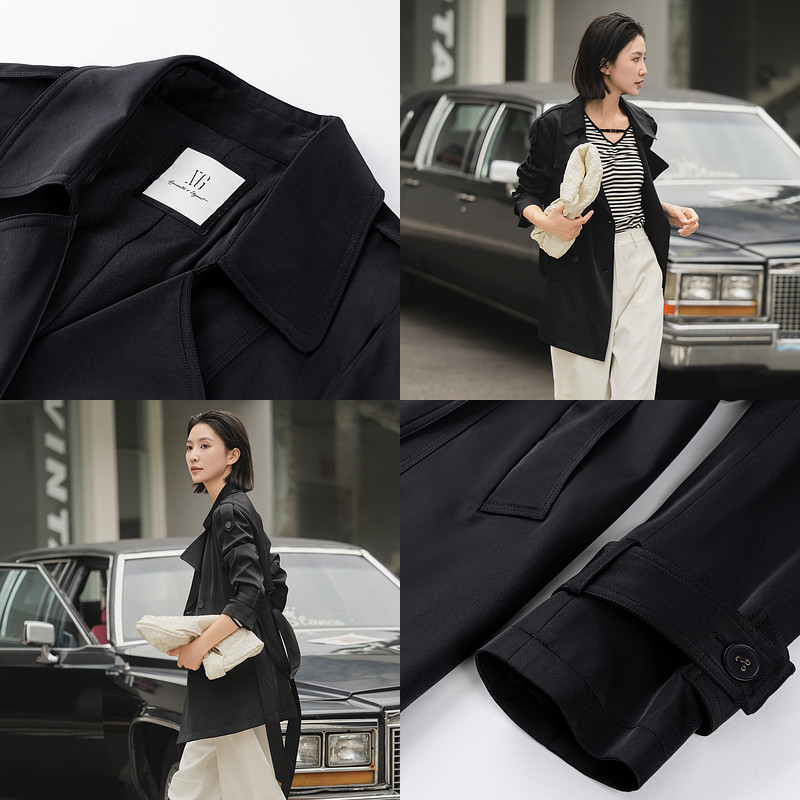 XG/雪歌XK308012A290黑色休闲风衣2025秋季新款中长款长袖外套女