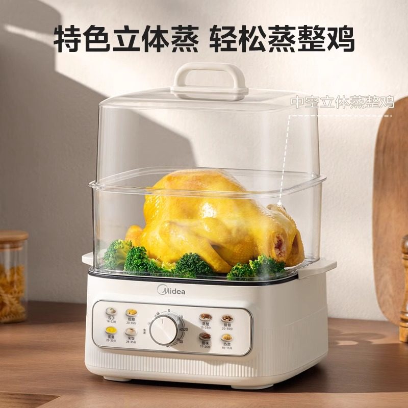 美的电蒸锅多功能小型家用四层蒸煮一体锅多层大容量蒸笼官方正品