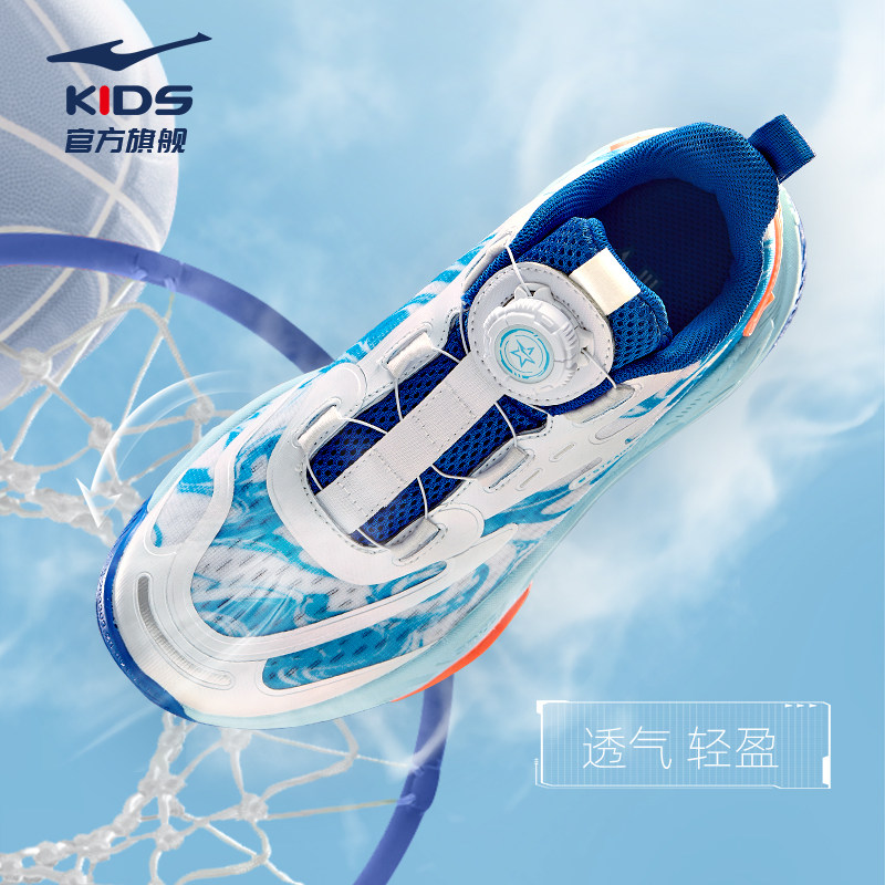 商场同款鸿星尔克男童运动鞋2024春夏季新款旋转扣透气儿童篮球鞋