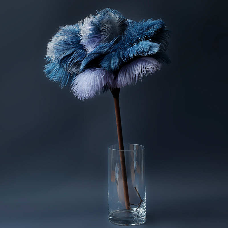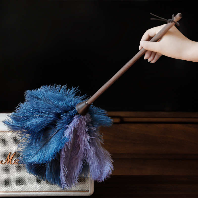 厂家直销黛蓝鸵羽除尘掸家用鸡毛掸子静电除尘扫灰空间装饰掸子