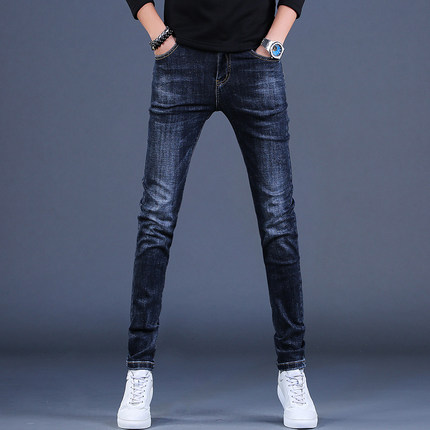2025高档款秋季高端牛仔裤男深蓝色修身小脚裤弹力百搭男士长裤潮