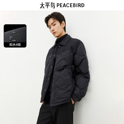 【衬衫式】太平鸟男装 轻薄羽绒服短款冬季保暖外套黑色防寒夹克