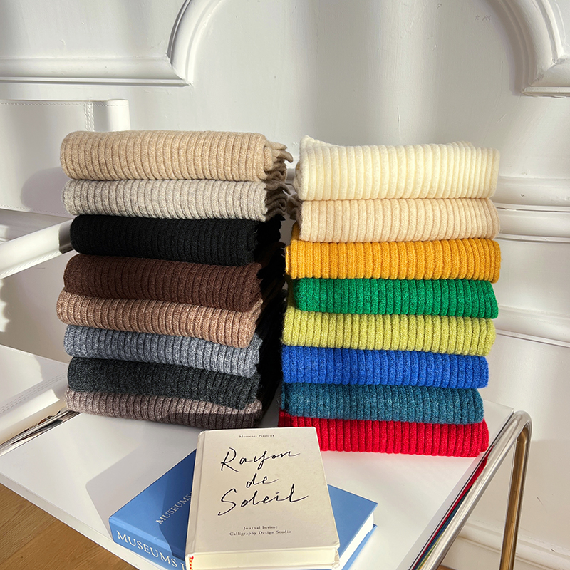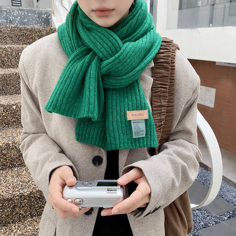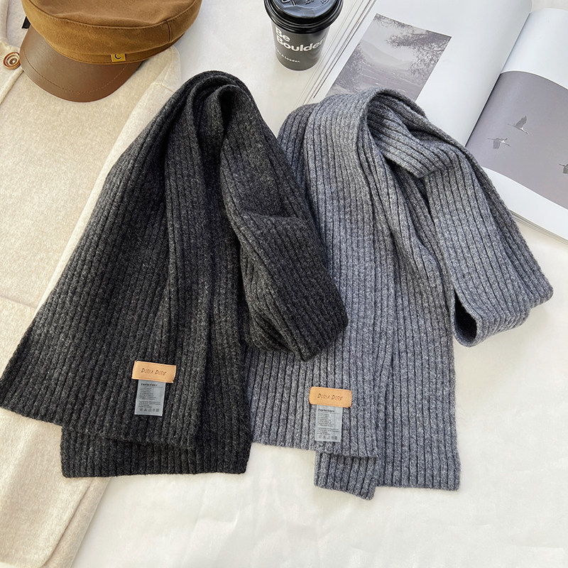 韩国温柔布标仿羊绒毛线围巾女秋冬季加厚学生围脖针织毛线保暖男
