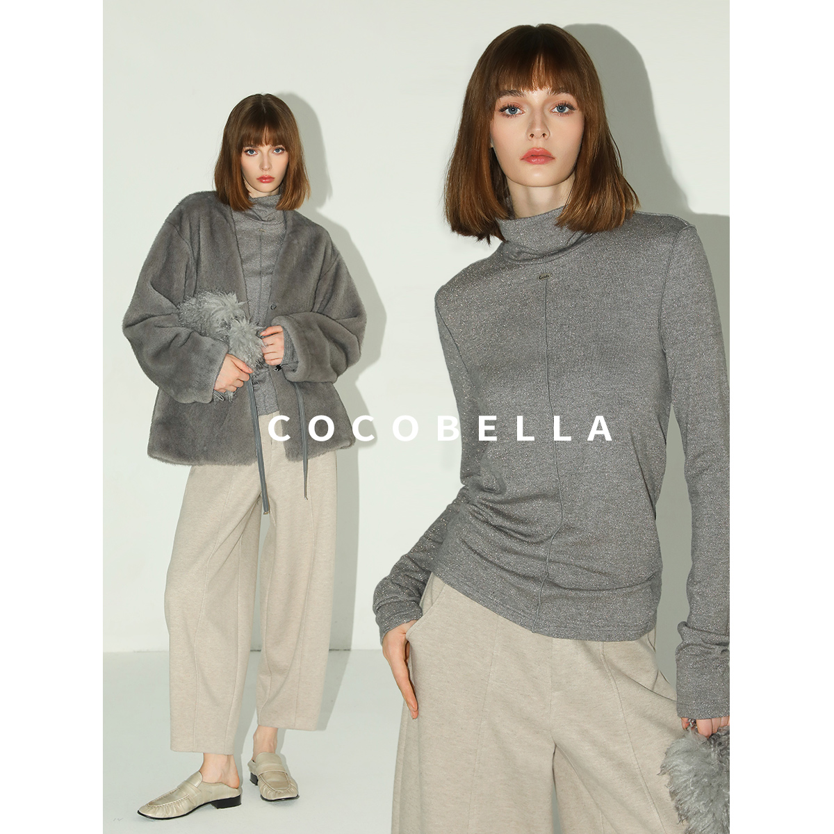 预售COCOBELLA亮葱细针坑条针织衫长袖T恤内搭高领打底衫TS0032-2