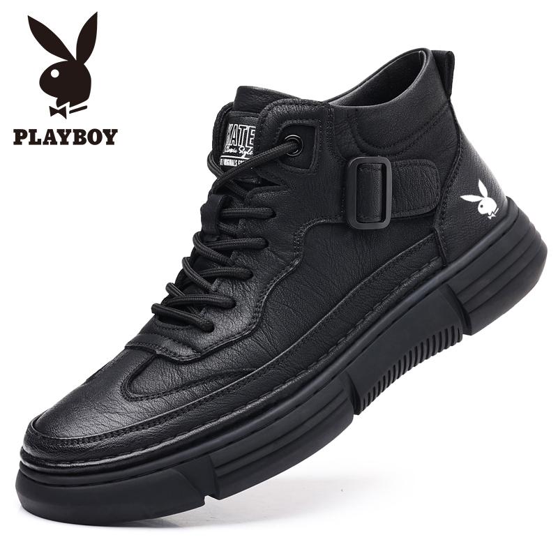 花花公子马丁靴男鞋真皮2025冬季加绒保暖棉鞋软底高帮鞋休闲皮鞋