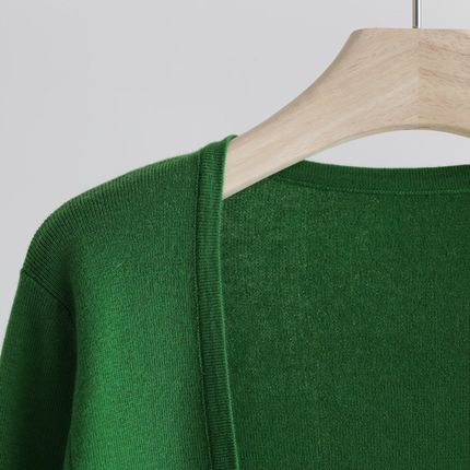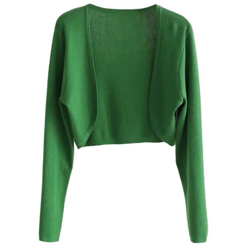 2024春秋羊毛开衫长袖无扣披肩女修身毛衣外套V领短款针织外搭