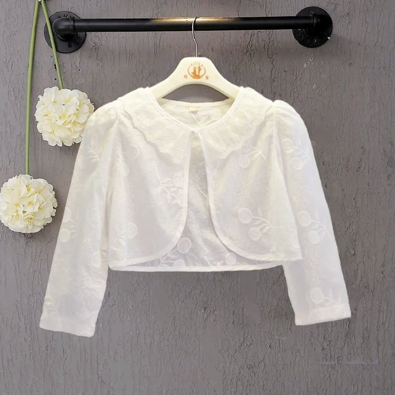 女童夏季薄款长短袖披肩纯棉外搭开衫防晒空调衫儿童小坎肩外套