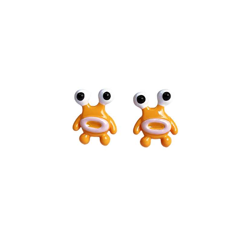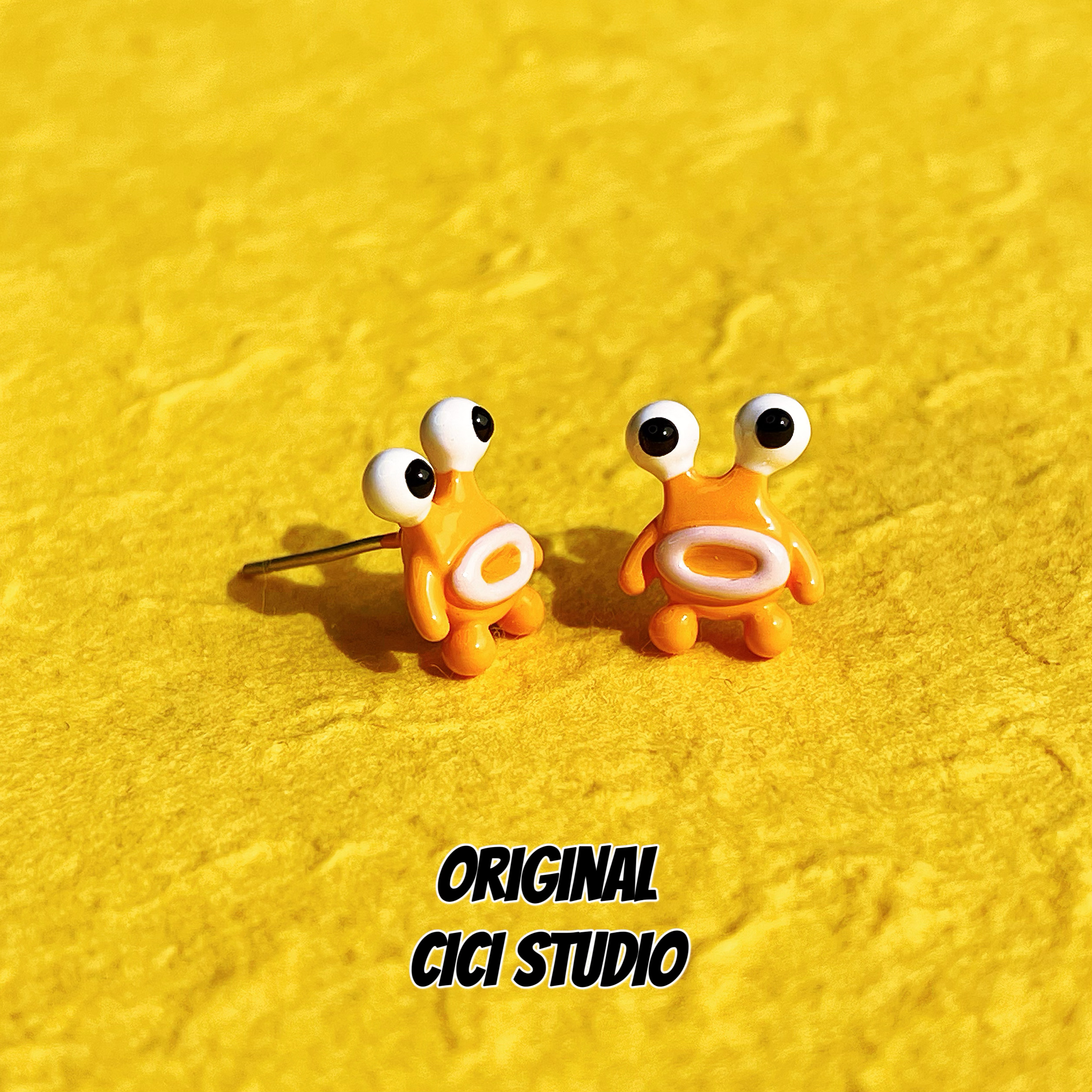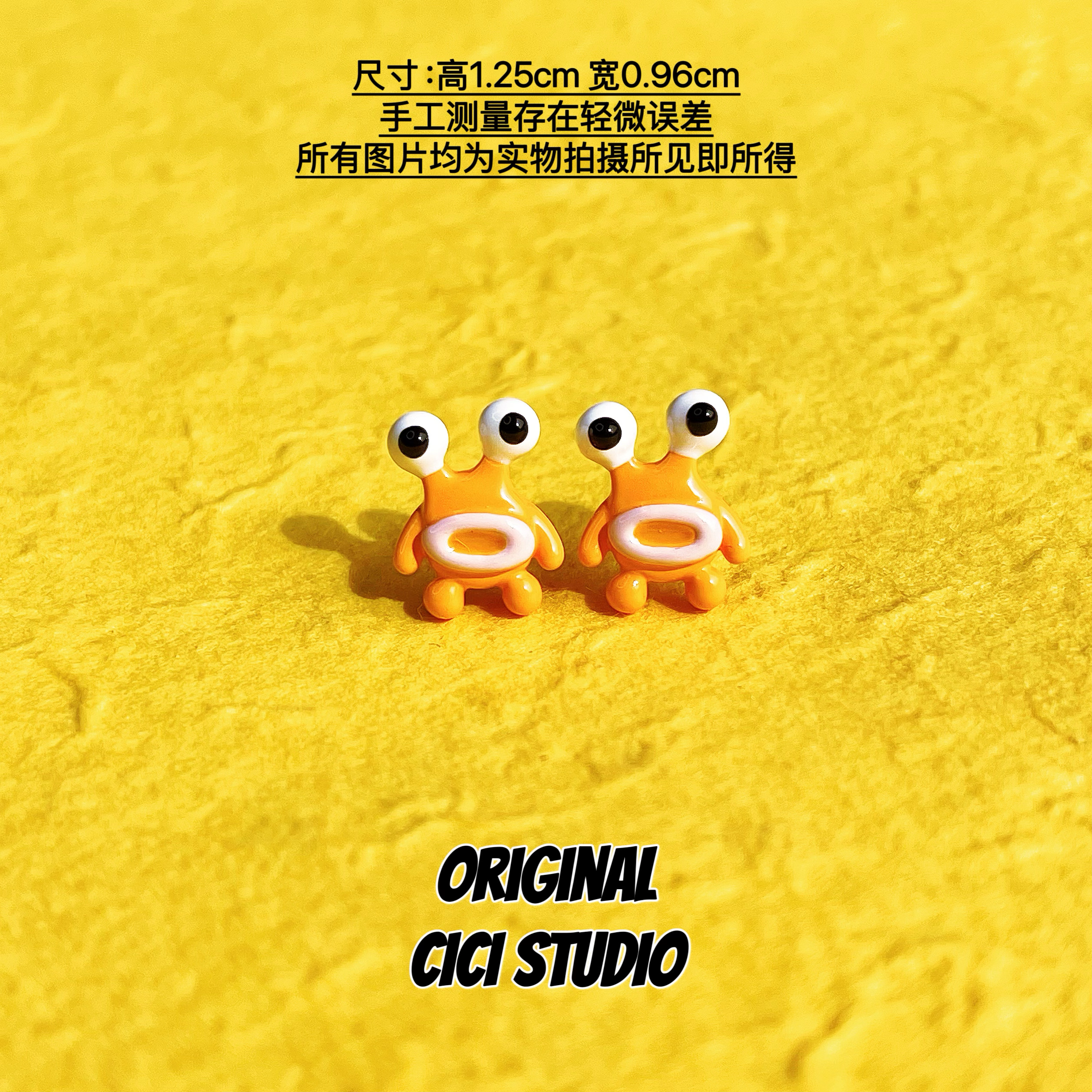 CICISTUDIO小众设计甜酷小怪兽外星人耳钉女多巴胺橙精工个性耳饰