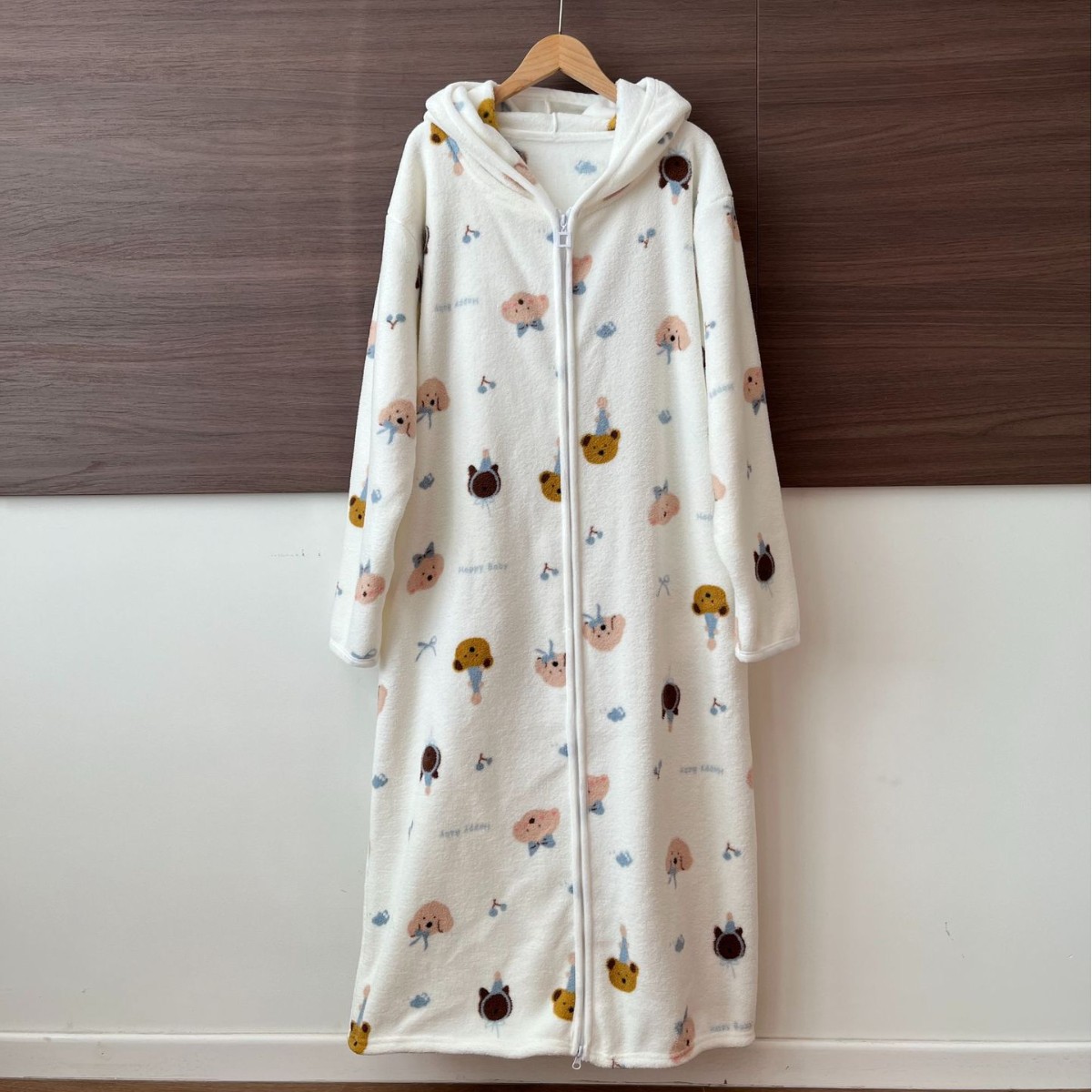 【实拍】秋冬季雪粒绒可爱碎花毛绒加厚家居服睡衣袍连帽拉链保暖