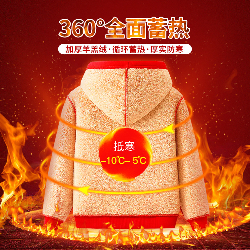 史努比儿童男童外套羊羔绒2025秋冬季新款上衣连帽加绒保暖拉链衫