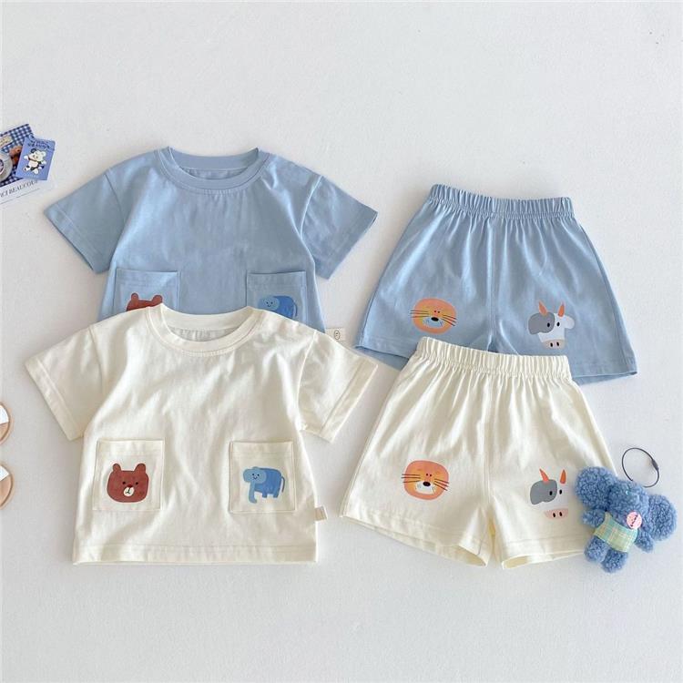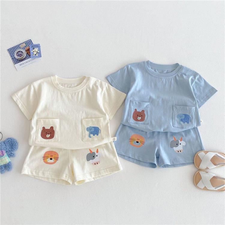 夏季新品~儿童动物园卡通短袖裤子套装男女童宝宝短裤上衣两件套