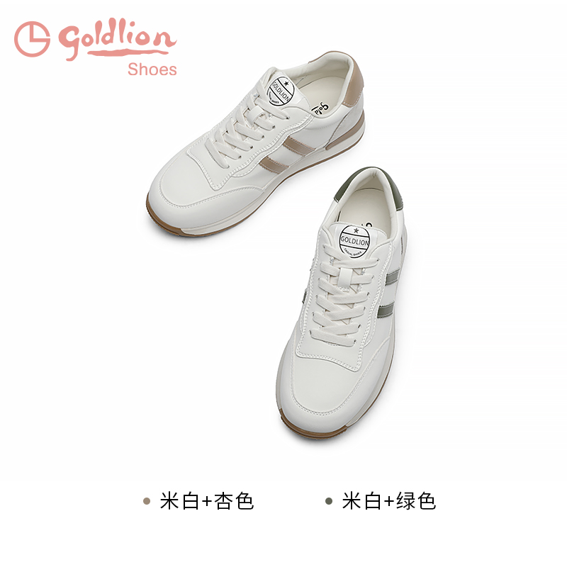 金利来女鞋春秋新款时尚撞色百搭条纹小白鞋系带厚底休闲运动鞋女