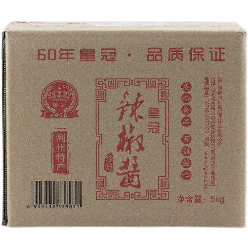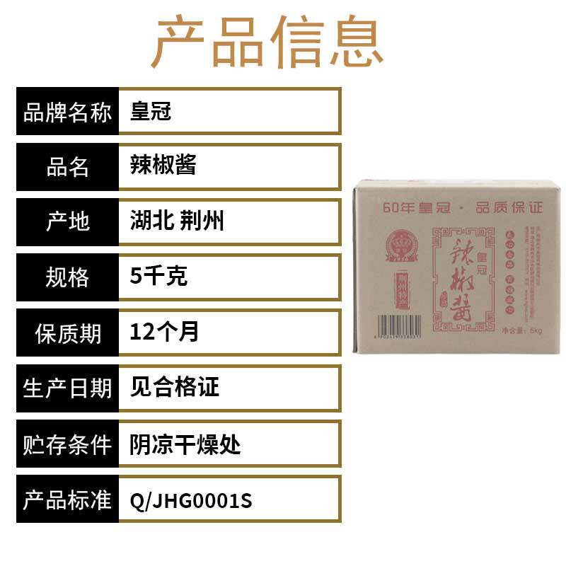 荆州皇冠辣椒酱5kg荆沙香辣酱甲鱼郭场鸡油焖大虾调酱料豆瓣伴侣