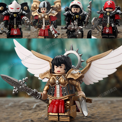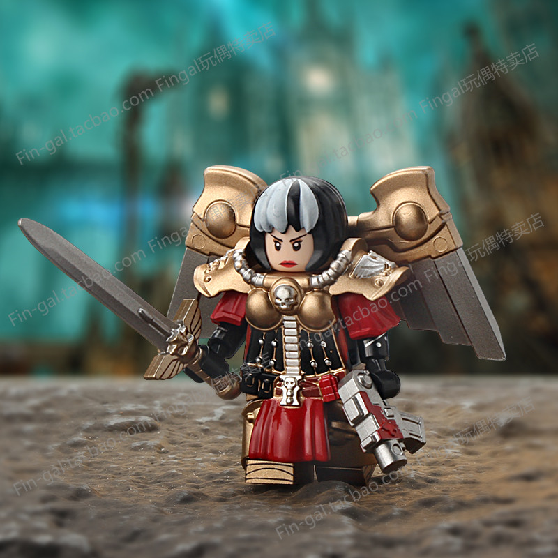 战锤40k双生圣女圣像旗手战斗修女塞勒斯汀人仔积木拼装玩具MY621