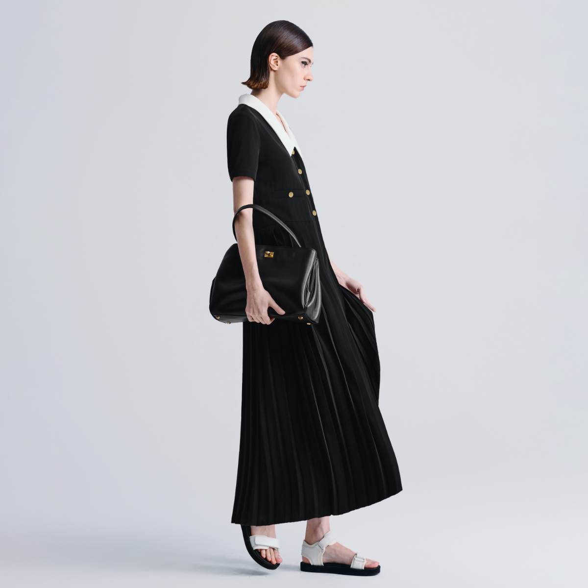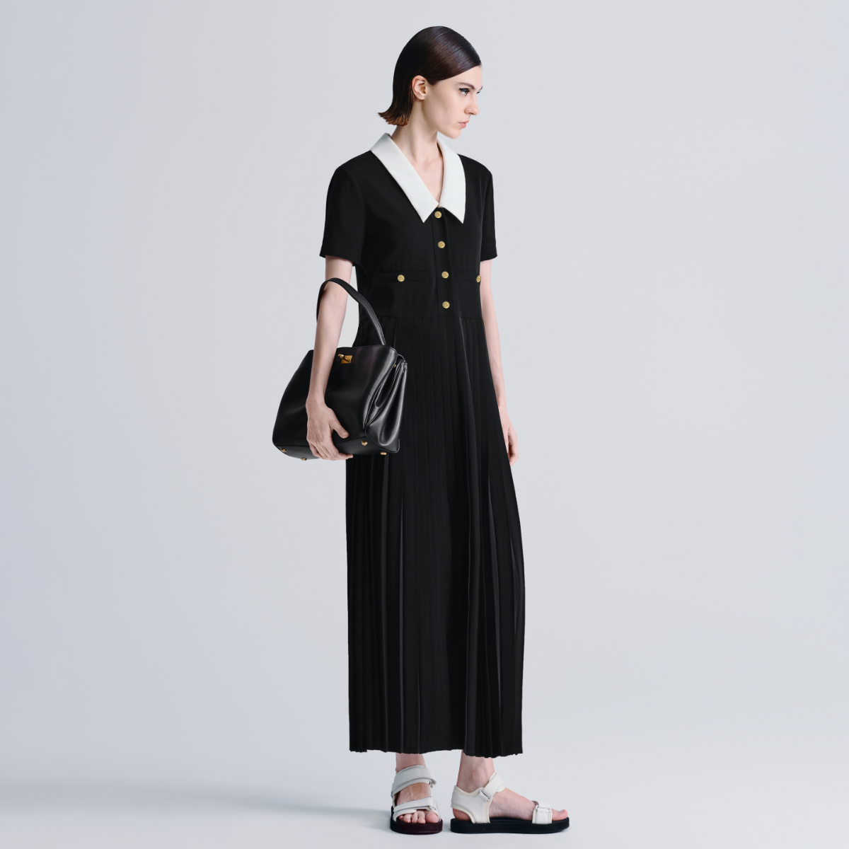 HAVVA拼色翻领短袖百褶连衣裙中长款女士裙子2025夏季Q3-3563