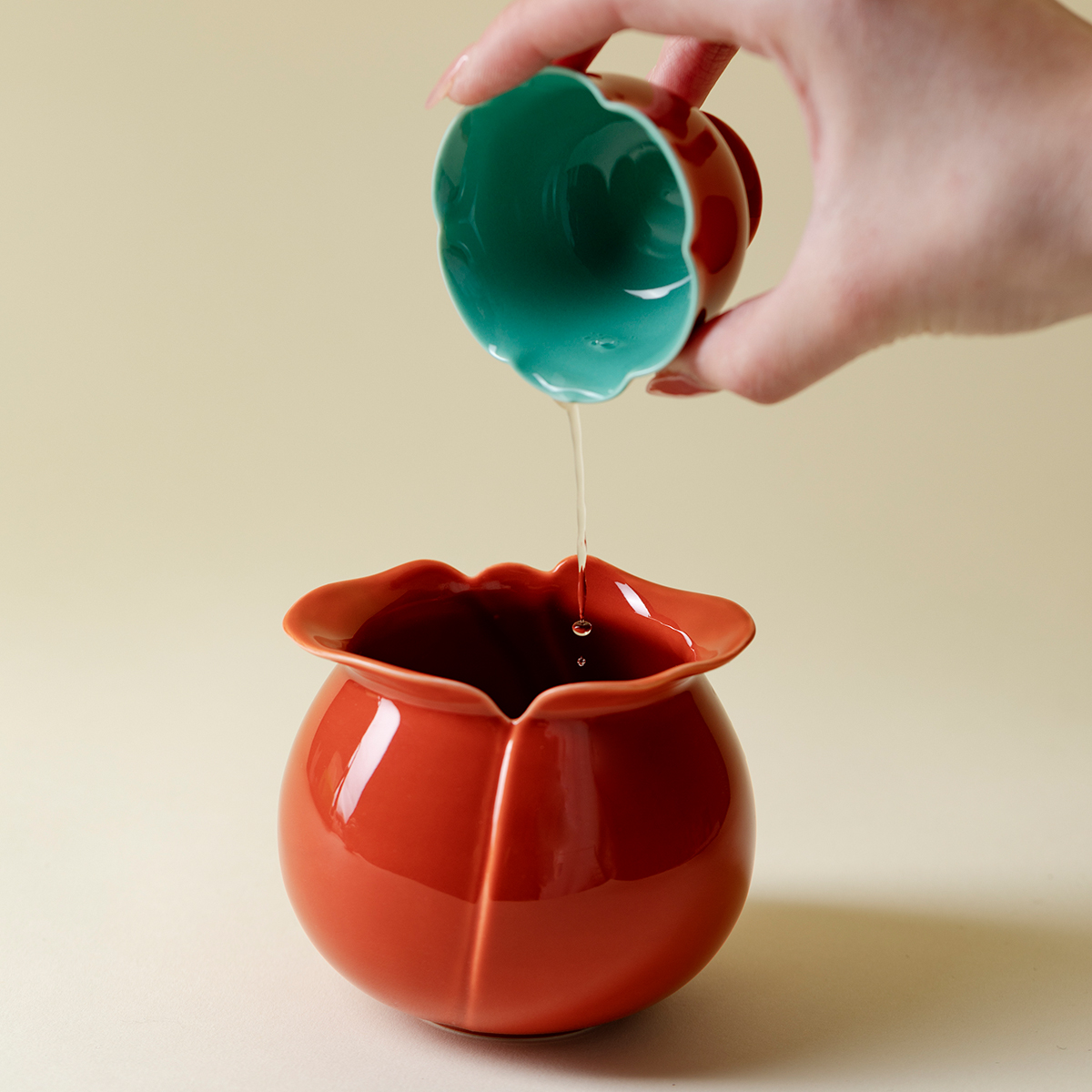 束刻 创意花瓣建水高端故宫红陶瓷茶洗杯洗笔洗功夫茶具配件水孟