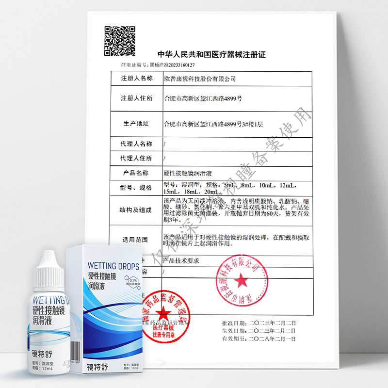 欧普康视镜特舒润眼液RGP硬性隐形眼镜ok镜润滑角膜润滑液6瓶套装