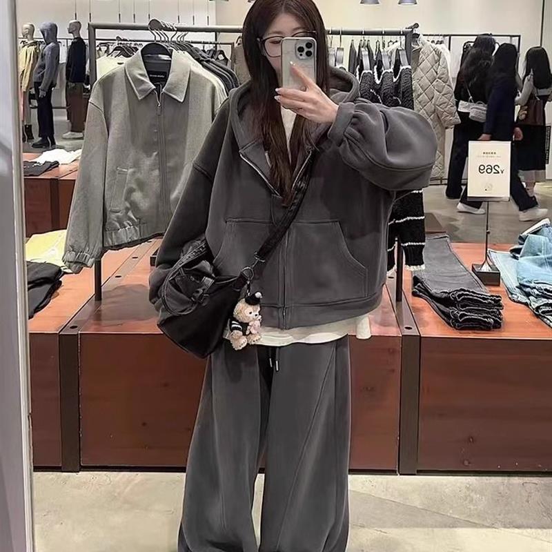 慵懒风运动服套装女秋冬加绒宽松时尚卫衣阔腿裤休闲两件套跑步潮