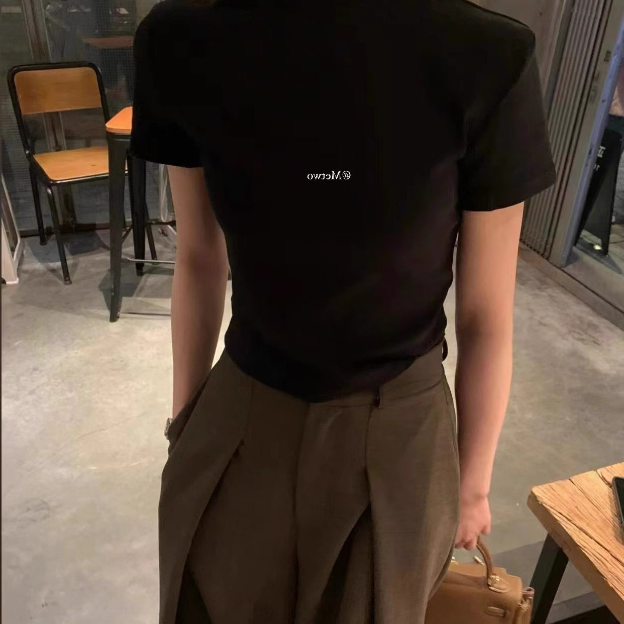 韩系修身圆领白色短袖T恤女夏季正肩纯色半袖体恤内搭打底衫上衣