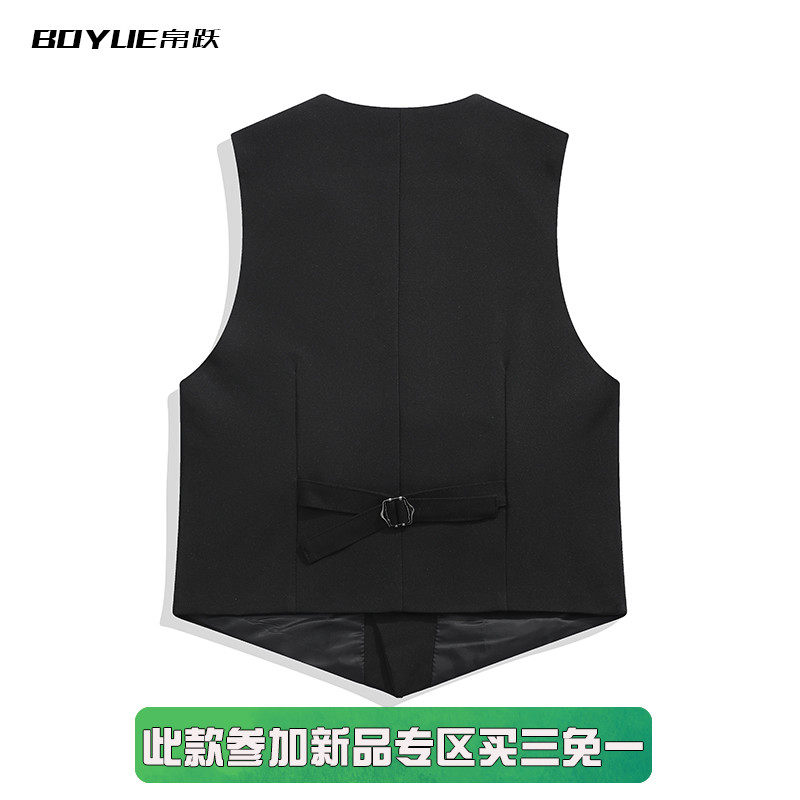 BOYUE帛跃英伦V领修身西装马甲简约商务休闲轻熟风痞帅背心外套男
