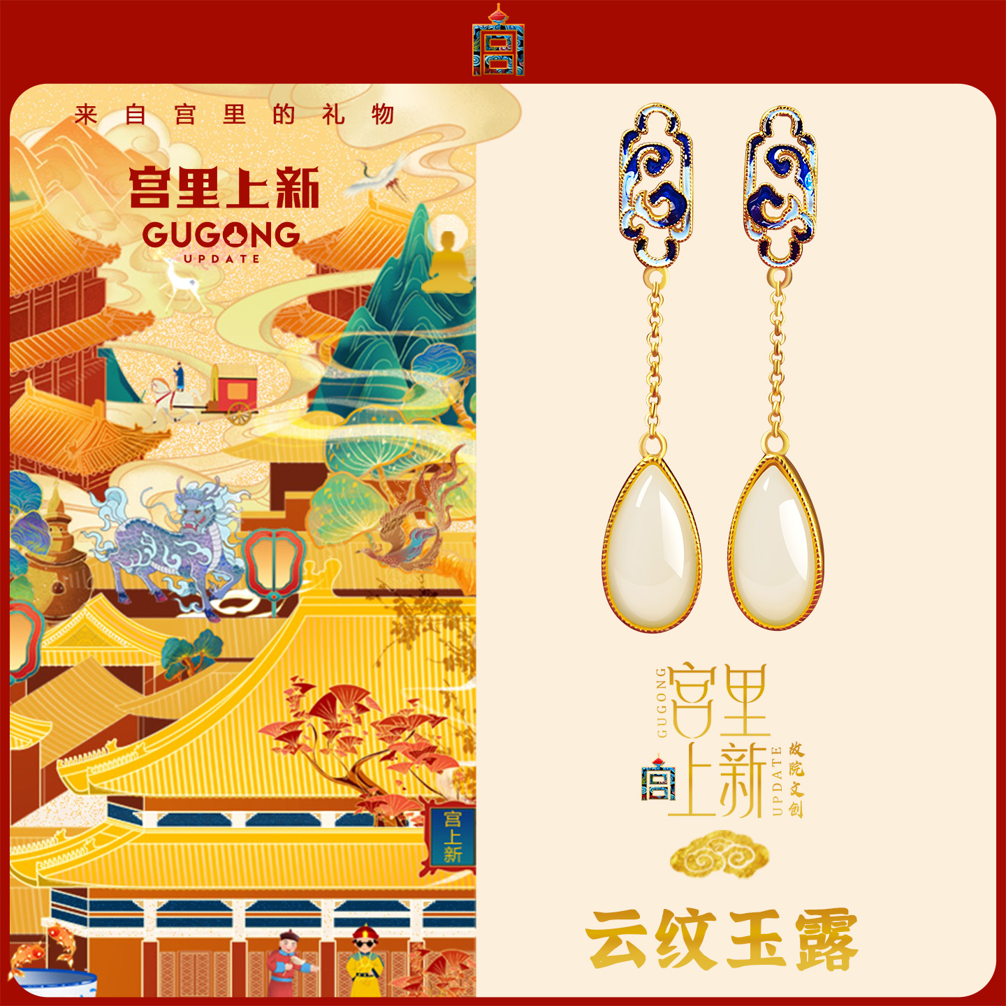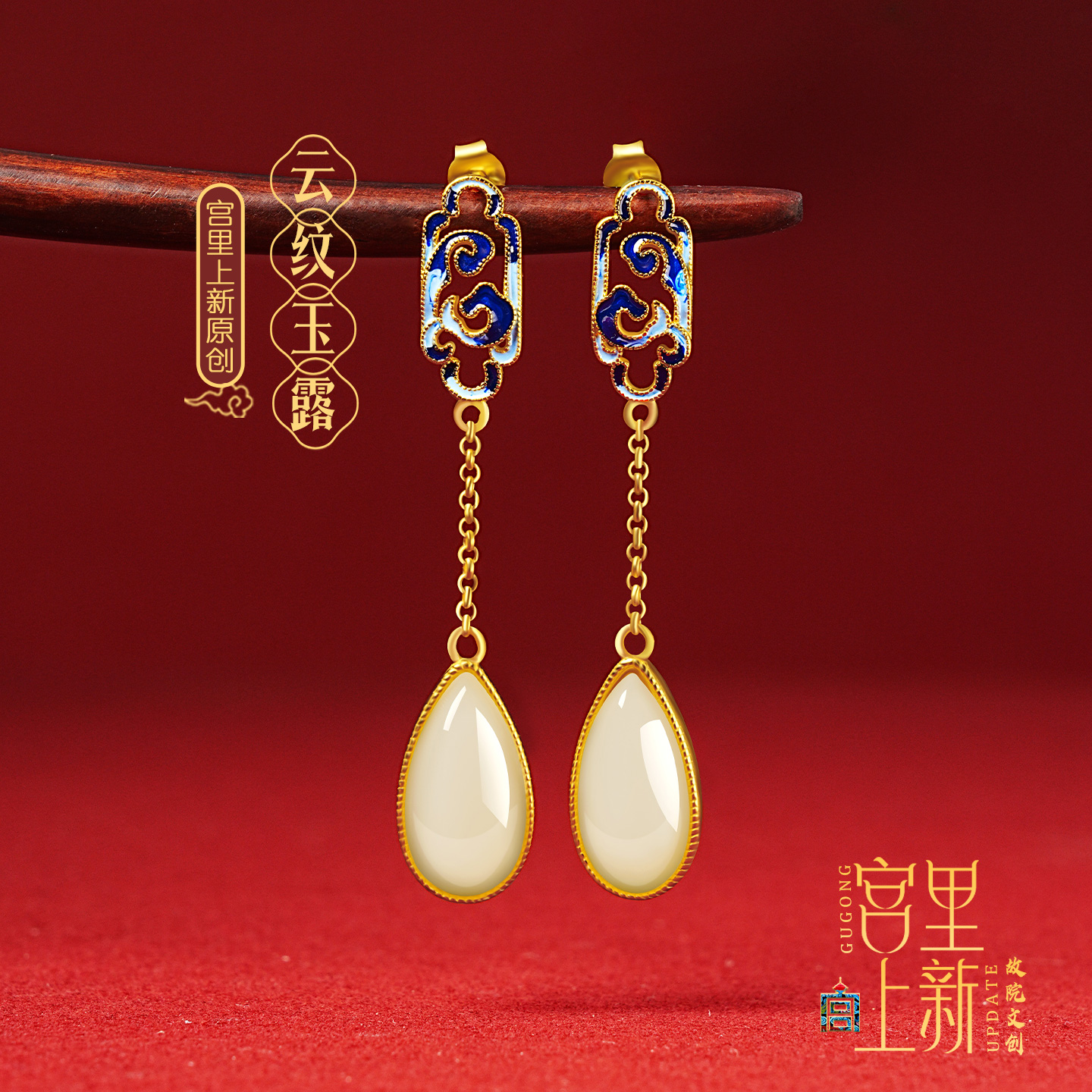 宫里上新和田玉耳饰女新中式耳环长款玉水滴耳坠纯银耳钉生日礼物