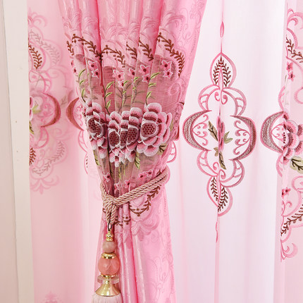 欧式简约现代粉色水溶绣花镂空窗帘布纱刺绣窗帘成品遮光客厅卧室