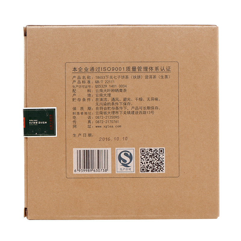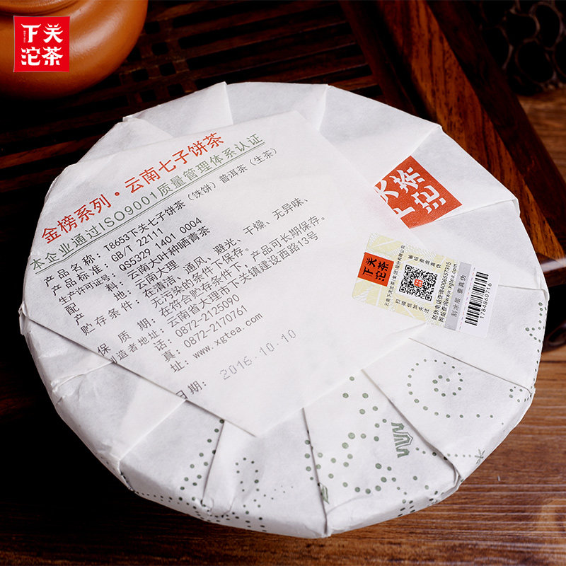 云南茶叶普洱生茶饼 下关沱茶2016年金榜系列铁饼茶T8653盒装357g