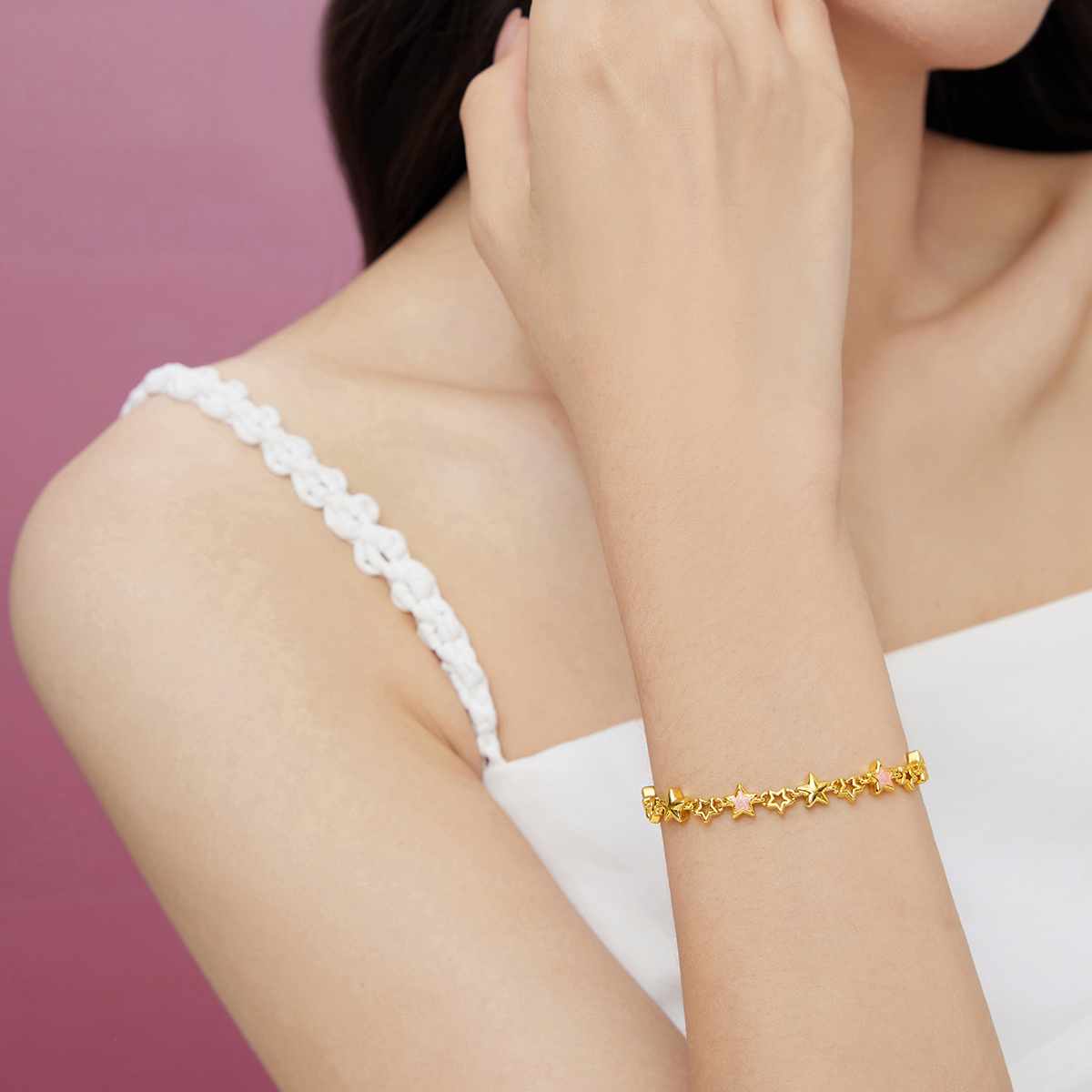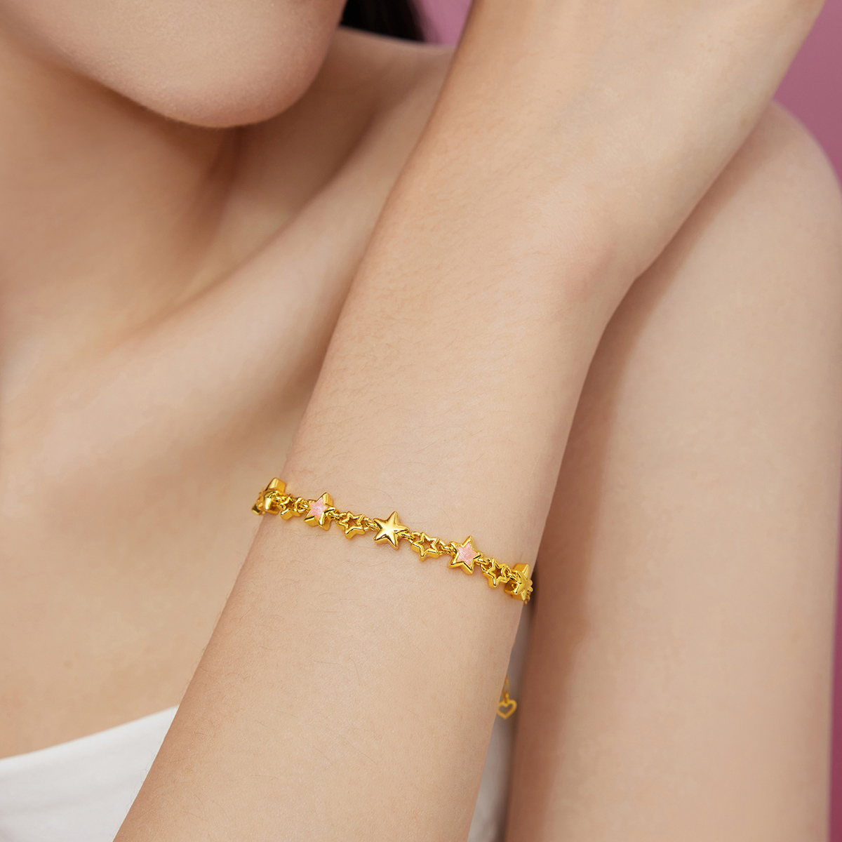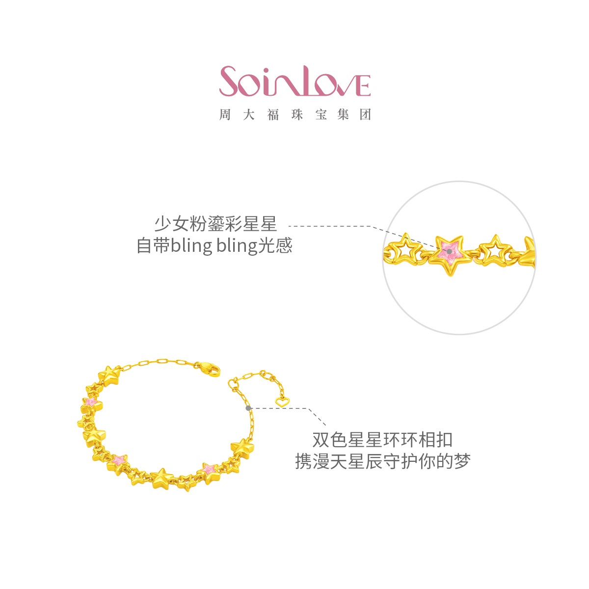 周大福SOINLOVE宝藏女孩粉色星梦星星黄金足金手链女圣诞礼物