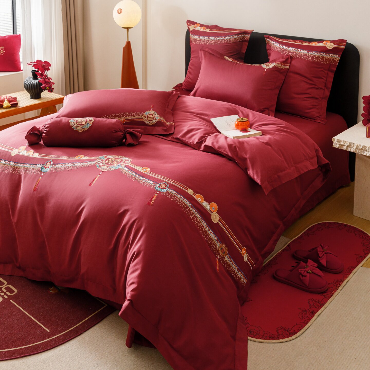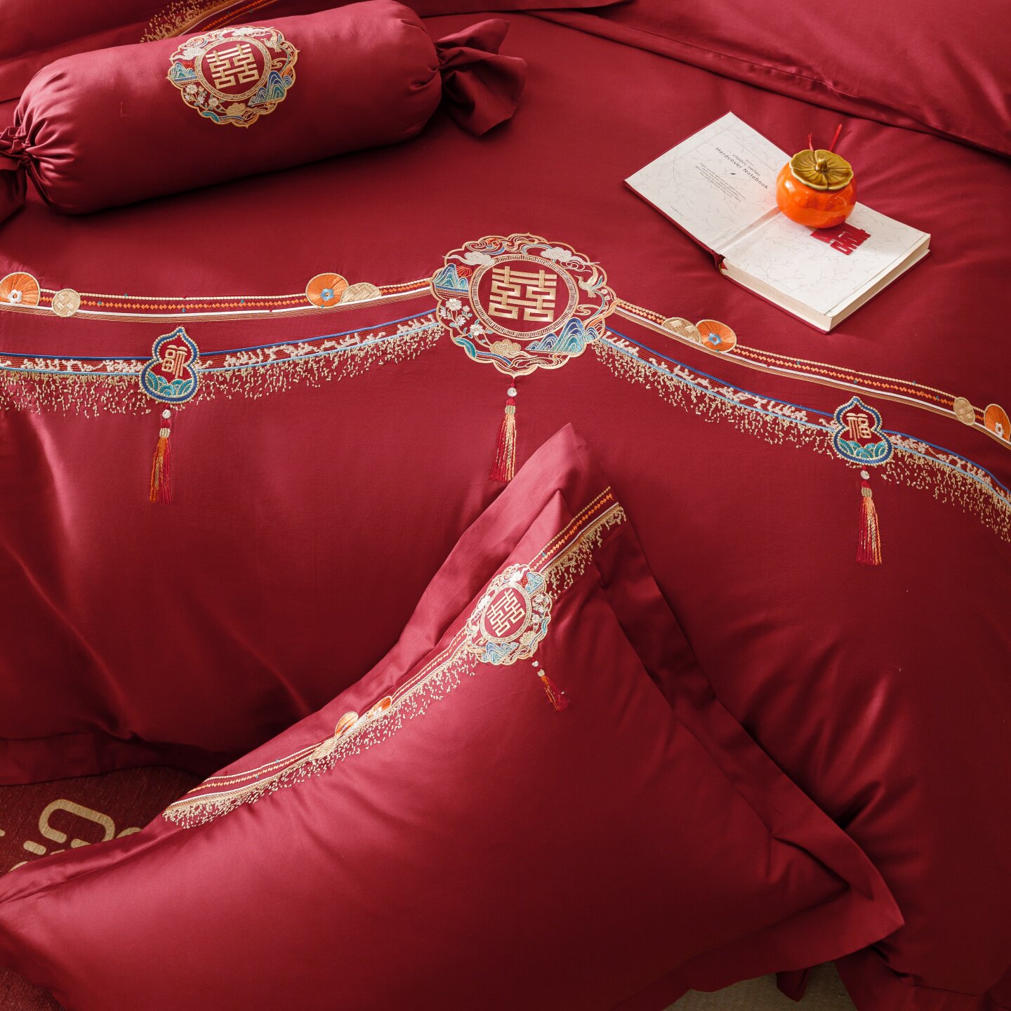 长绒棉红色刺绣婚庆四件套