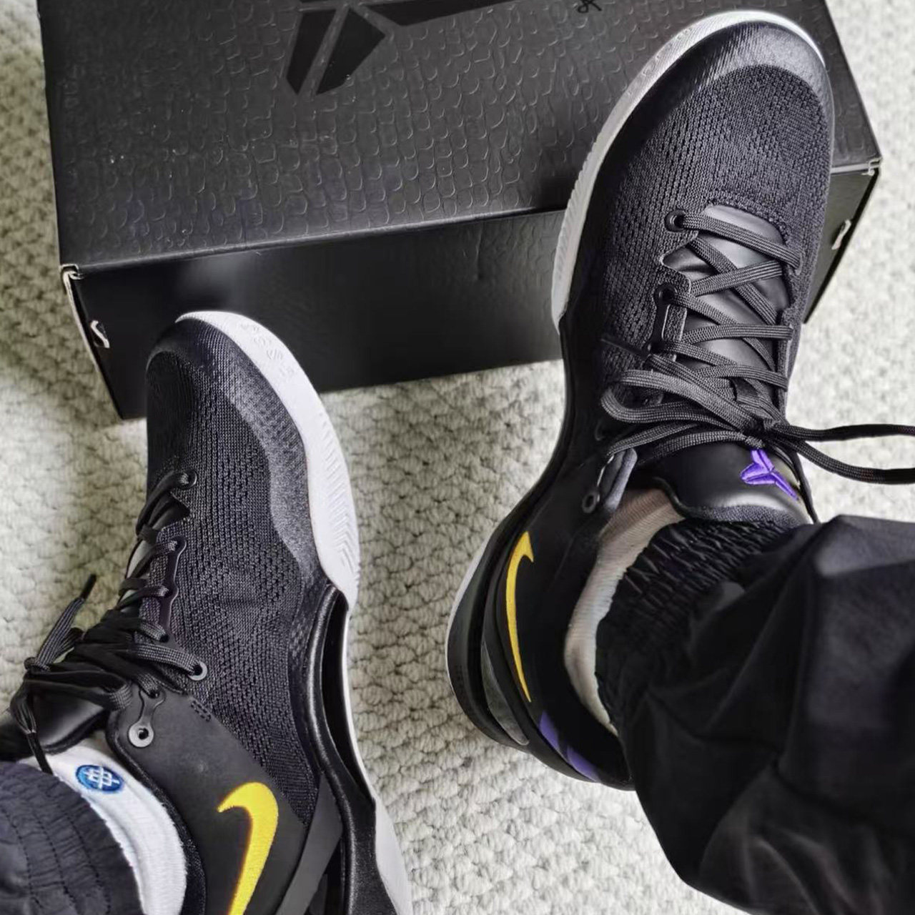 科比黑紫黄低帮篮球实战鞋
