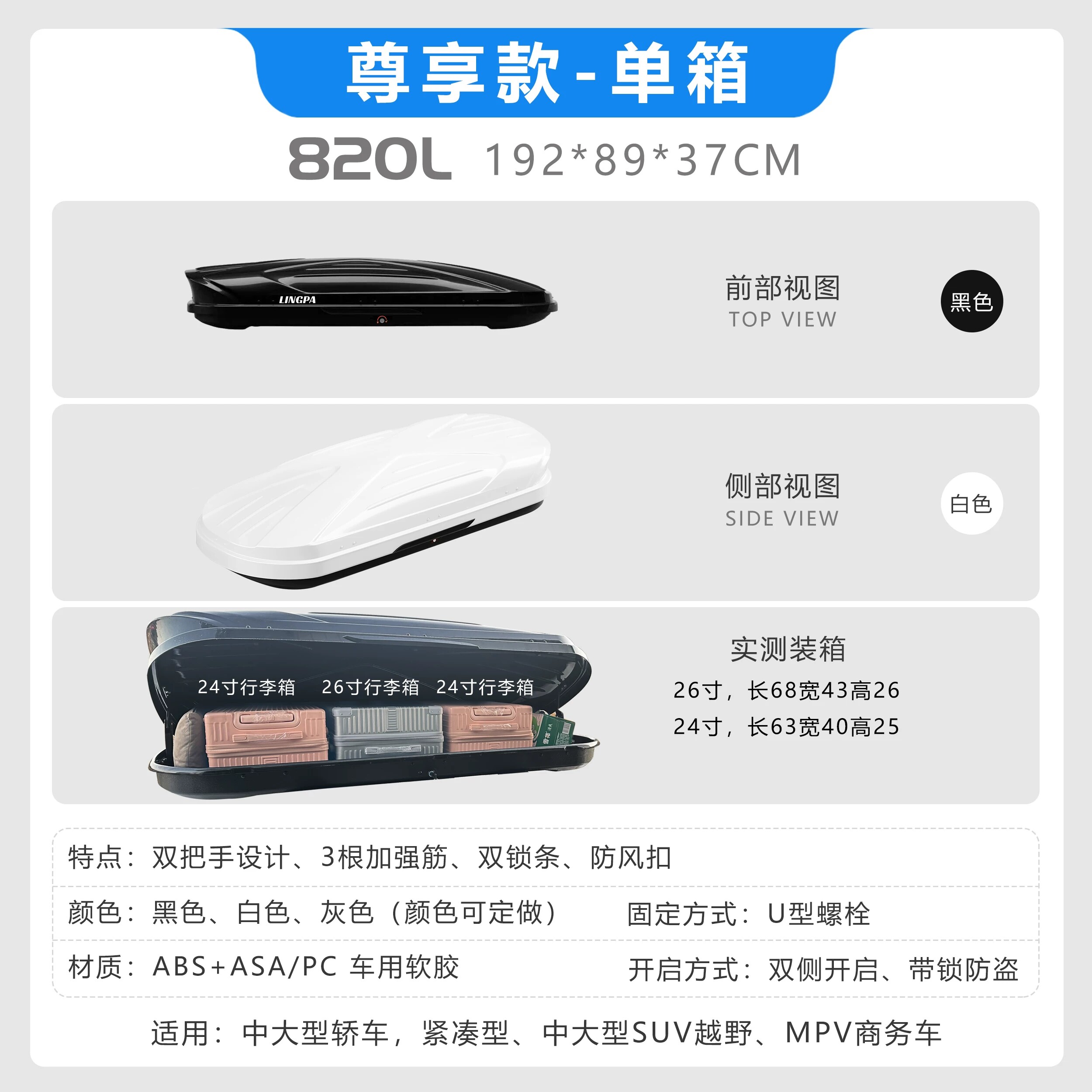 汽车车顶行李箱通用SUV大容量静音防水比亚迪宋专用车载储物箱