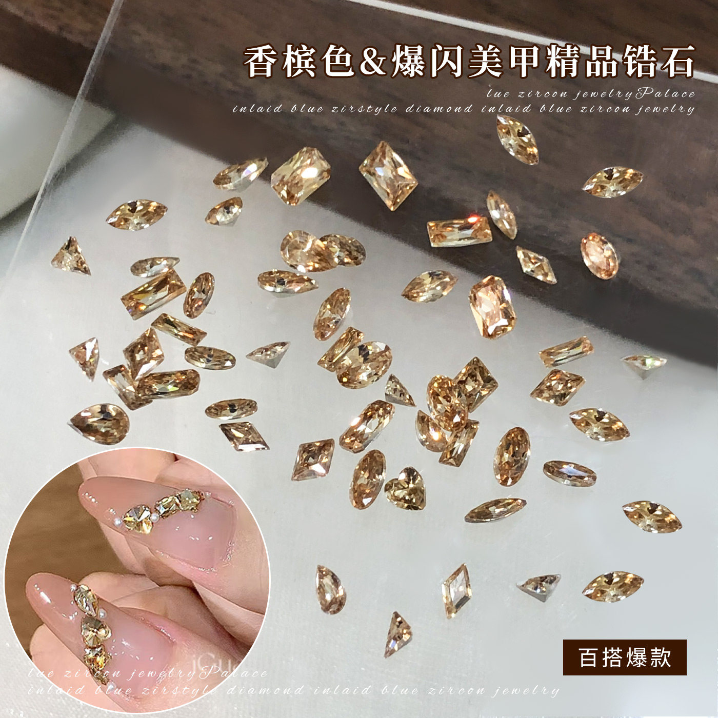 5A尖底小锆石美甲饰品网红爆款香槟马眼水滴鸽子蛋异形裸钻石配饰