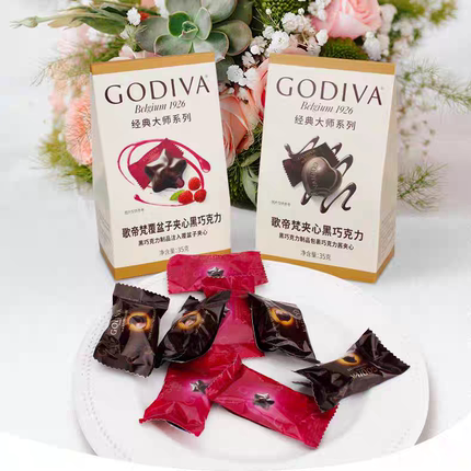 GODIVA/歌帝梵经典大师系列心形黑巧覆盆子夹心巧克力5颗装35g