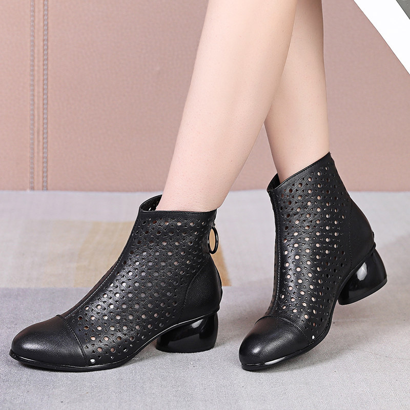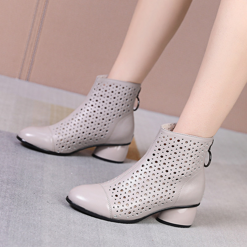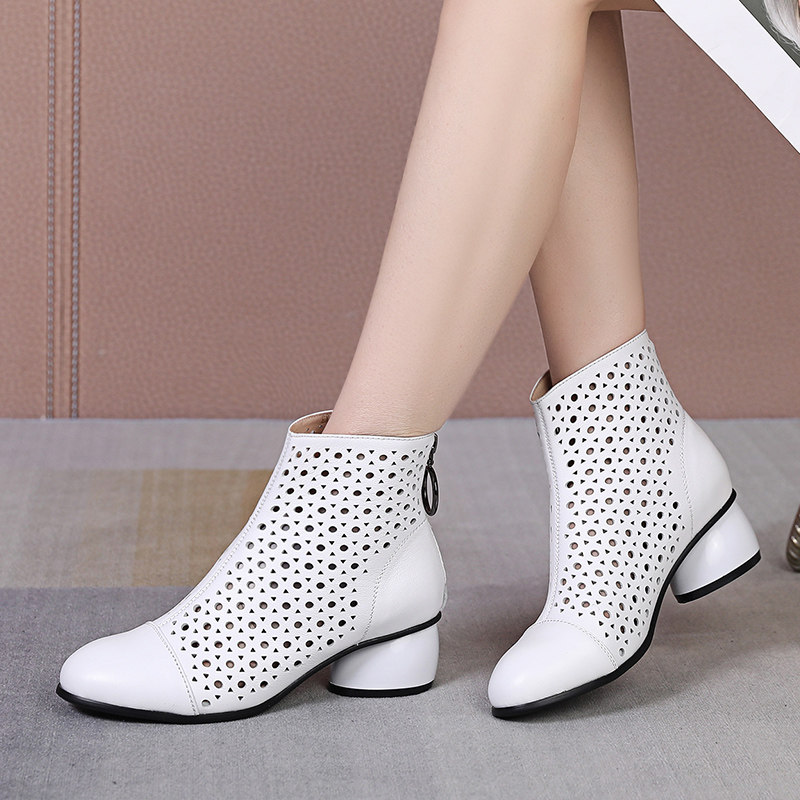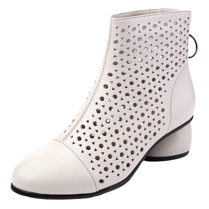 真皮镂空网靴单靴女春秋2023新款女靴白色洞洞短靴凉靴夏季女鞋子