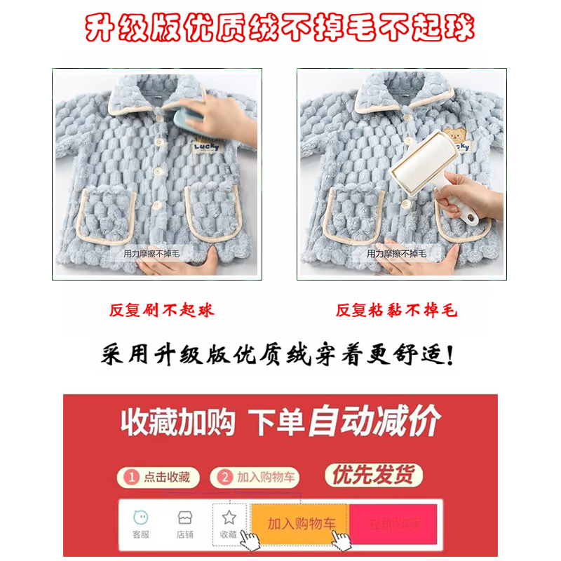 秋冬季儿童法兰绒睡衣加绒男童男孩保暖加厚珊瑚绒女童家居服套装