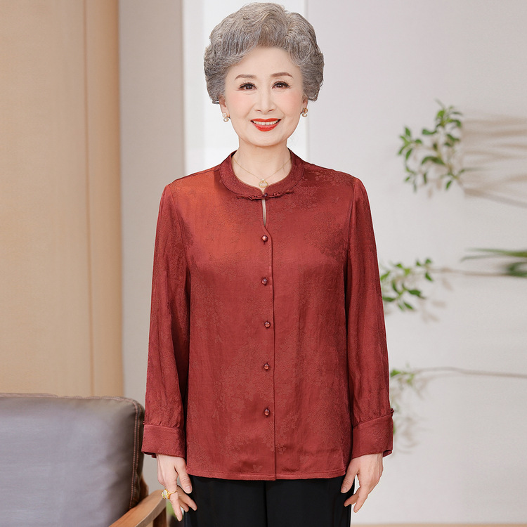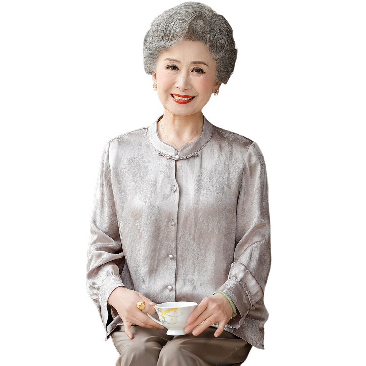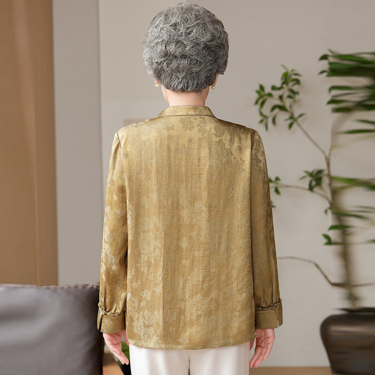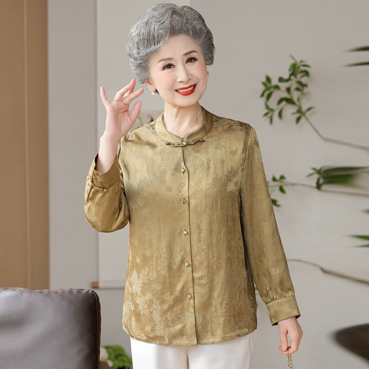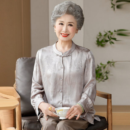 老年人奶奶秋装亚麻衬衫女士香云纱中老年妈妈长袖中式上衣新