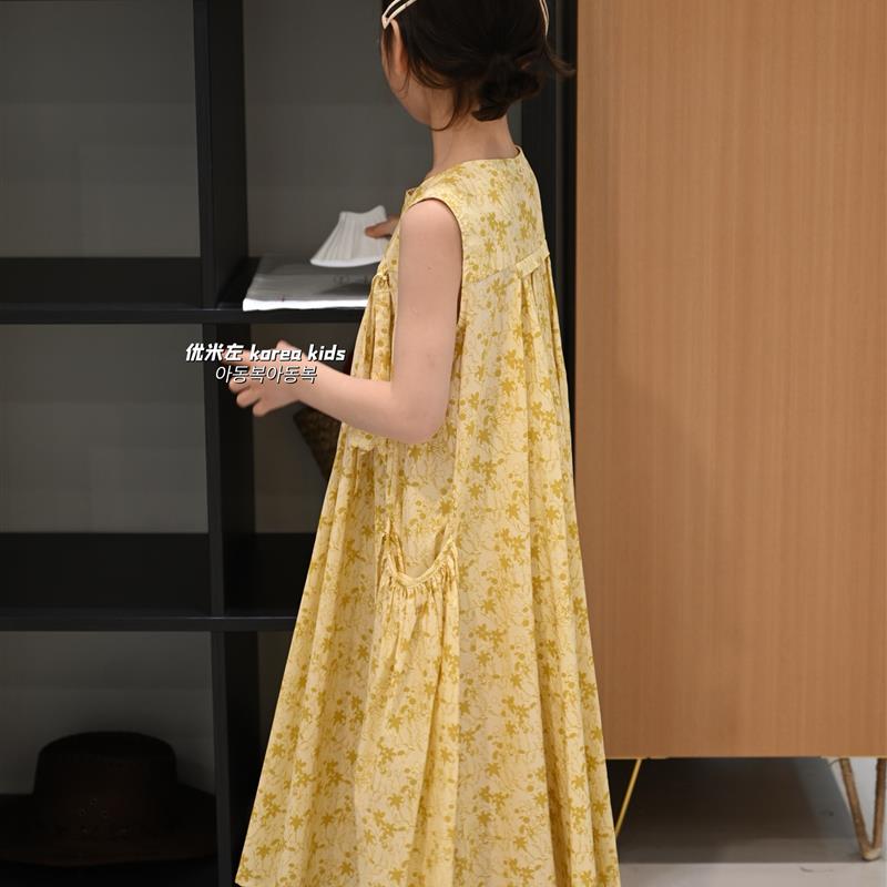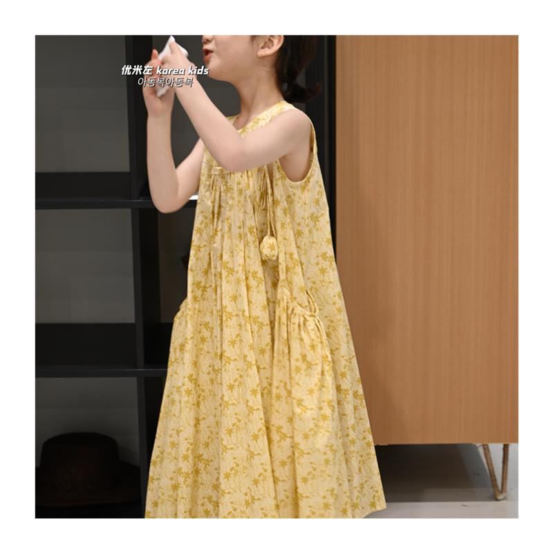 小女孩夏天裙子2025夏季新品韩版女童黄色花朵连衣裙儿童背心裙