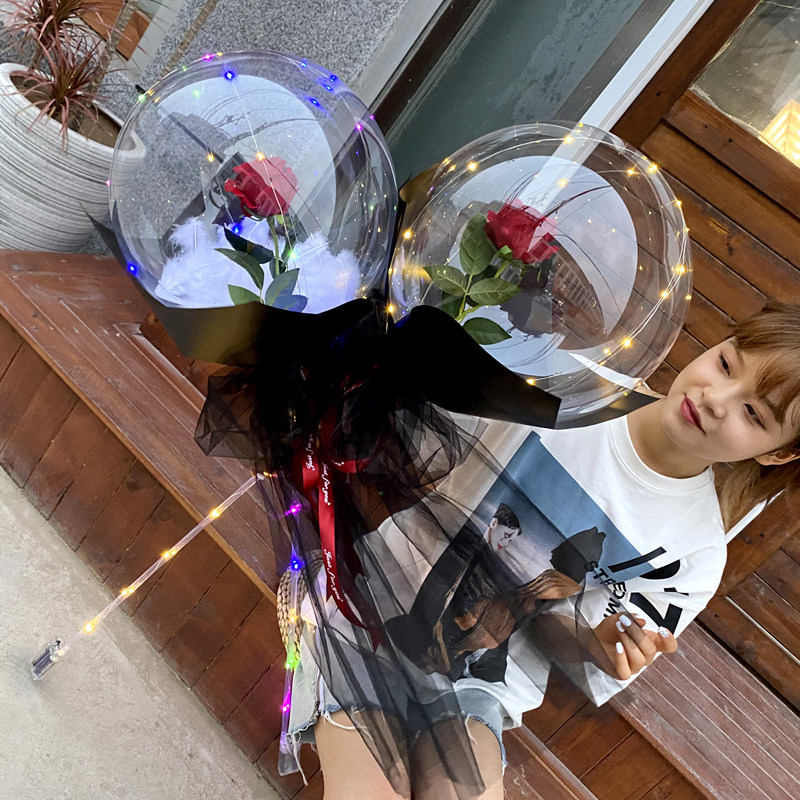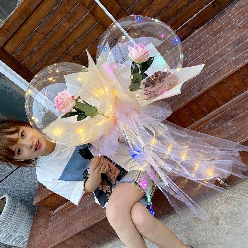 网红波波球玫瑰花带灯发光亮火爆款告白礼物气球花材料包地推摆摊
