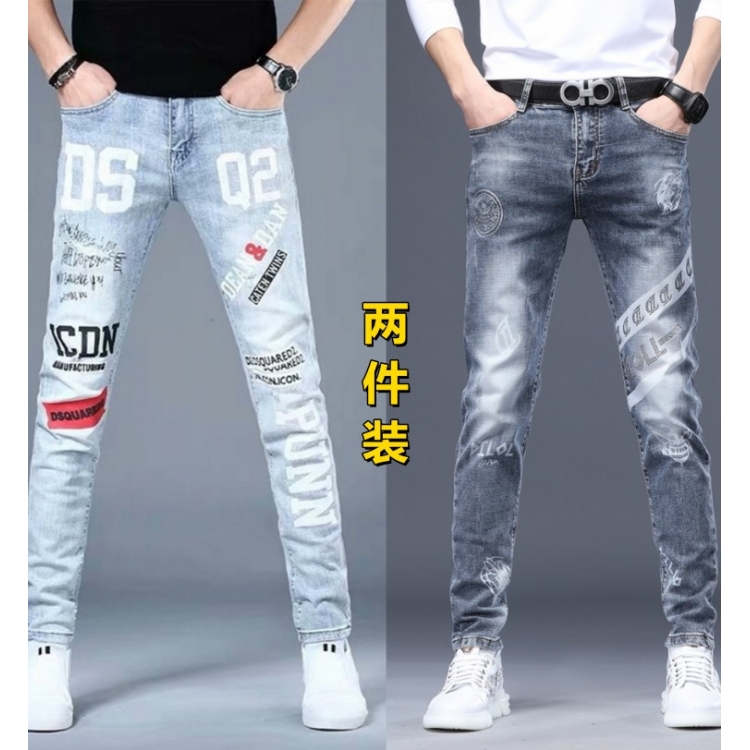 春秋季新款刺绣花纹百搭牛仔裤男潮牌弹力修身休闲小脚高端长裤子