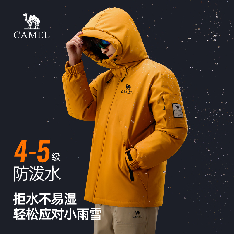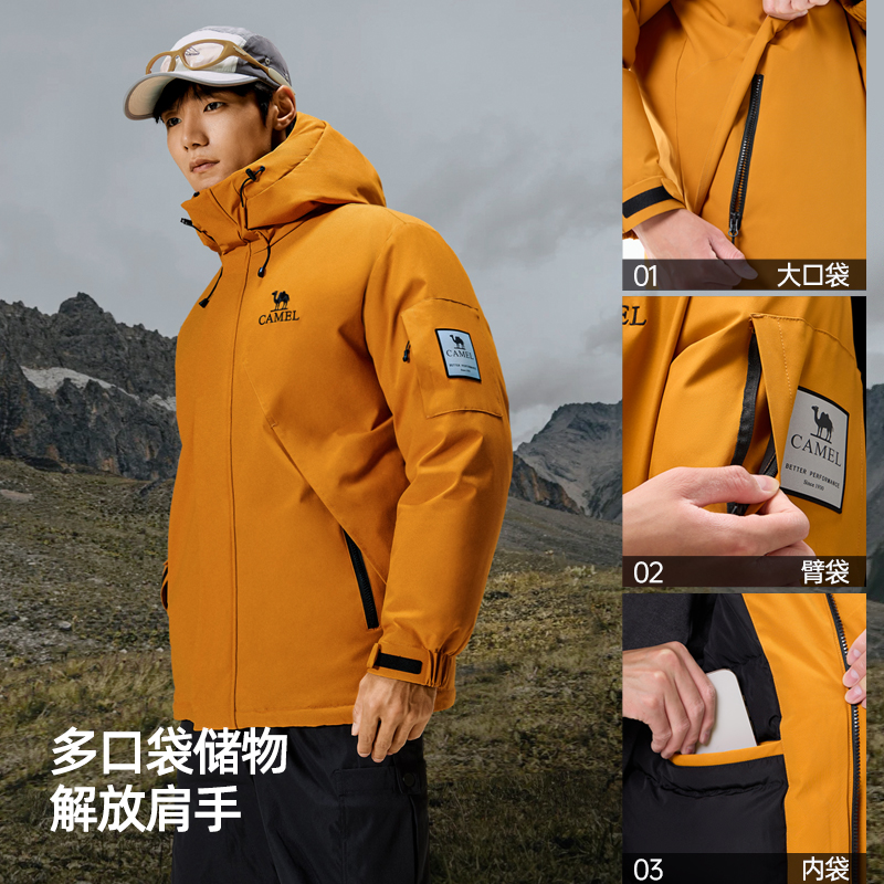 骆驼男装工装机能羽绒服男冬季2025新款连帽加厚保暖防泼水外套男