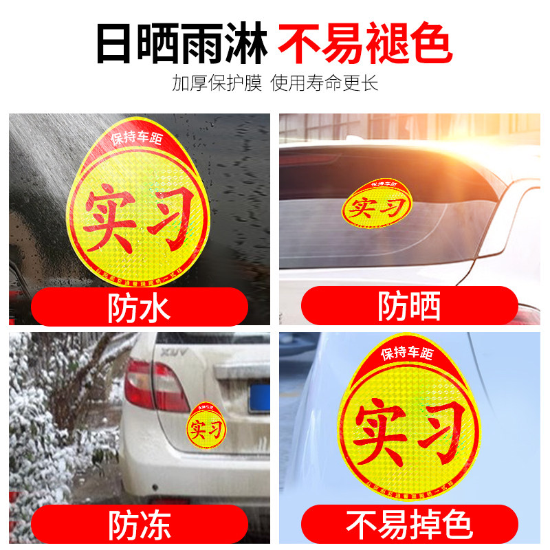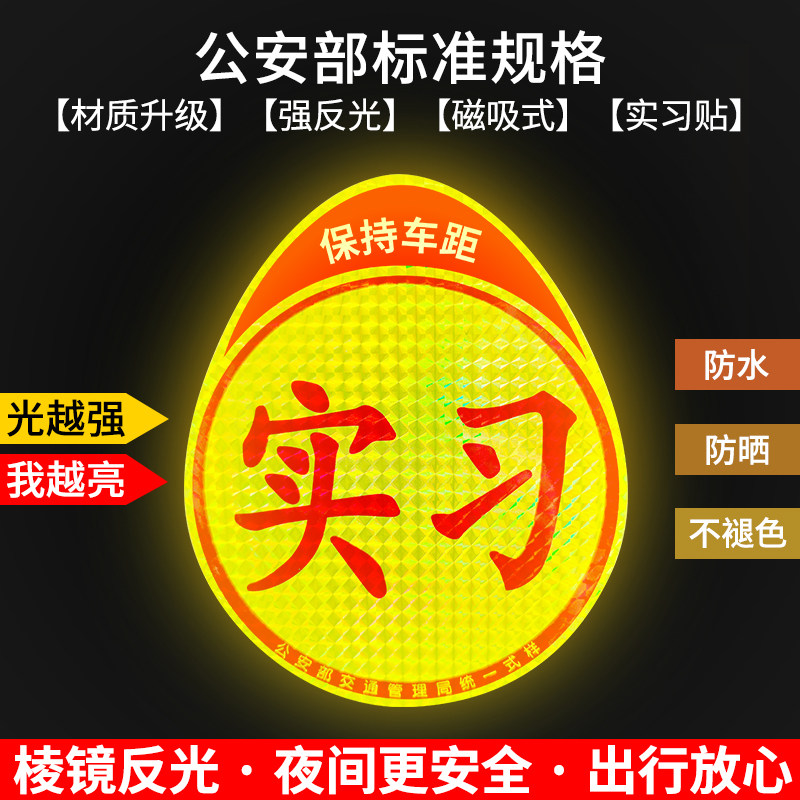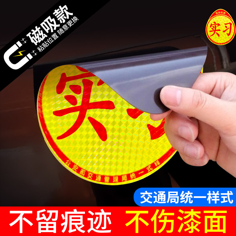 实习车贴新手上路反光磁贴汽车贴纸创意实习期专用磁吸标志女司机