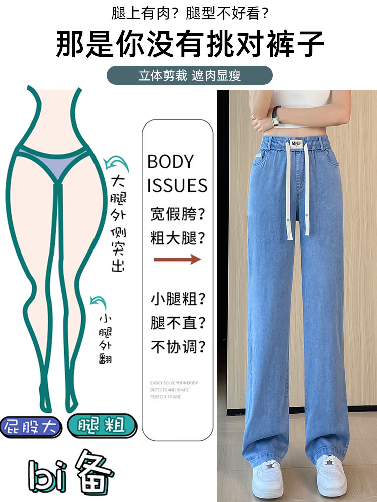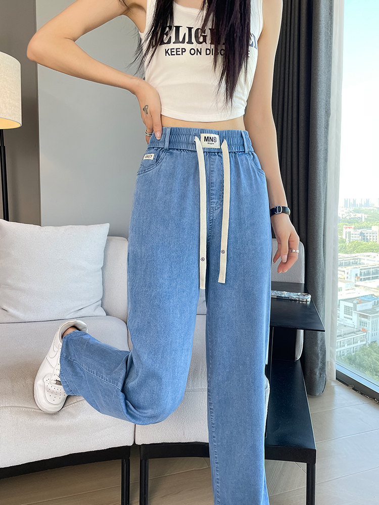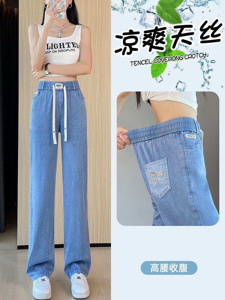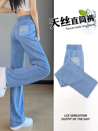 牛仔裤女夏季薄款学生直筒裤高腰加长版天丝垂感阔腿裤2024年新款