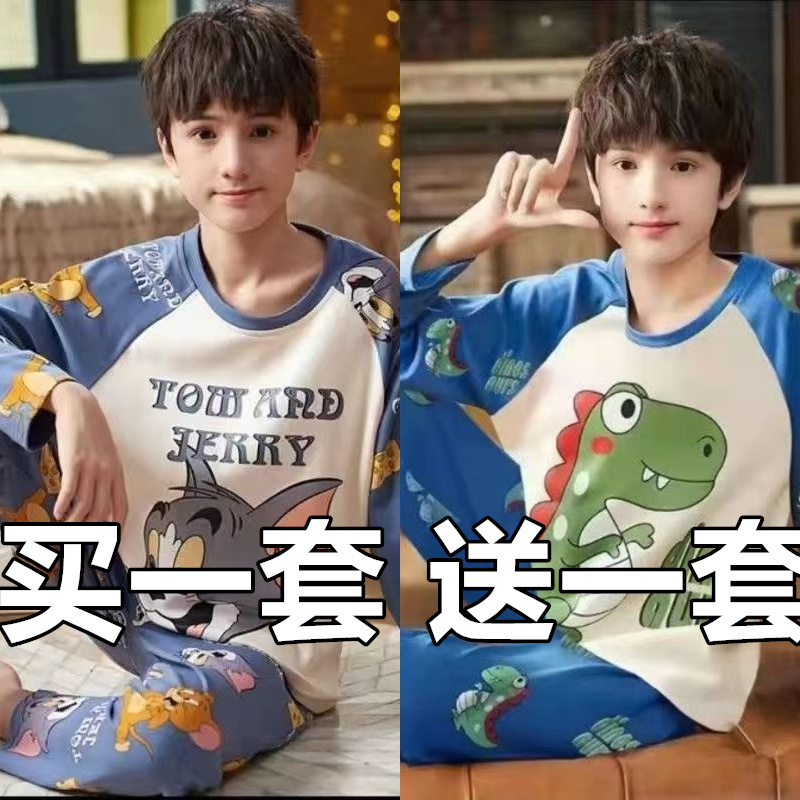 男童睡衣春秋季长袖纯棉薄款儿童小男孩宇航员大童家居服2025新款