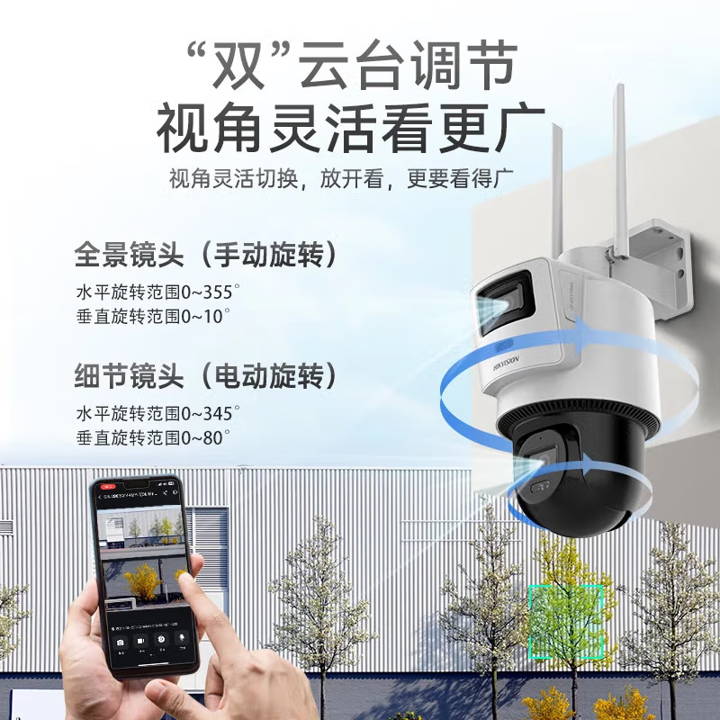 海康威视无线双摄400万监控摄影头360度全景wifi手机远程高清套装