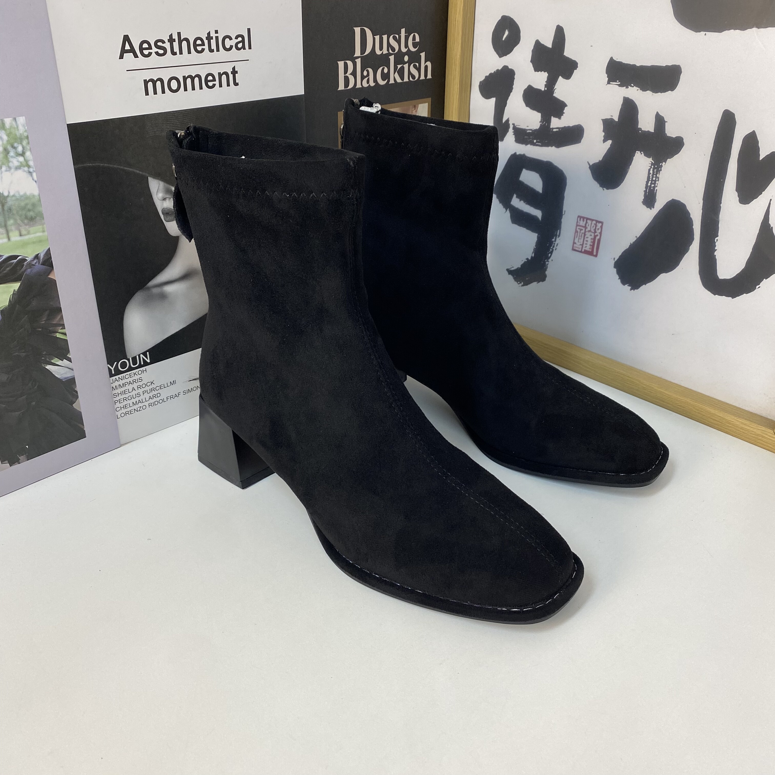 2025年新款秋冬季加绒黑色时尚百搭显瘦切尔西短靴子方头马丁靴女