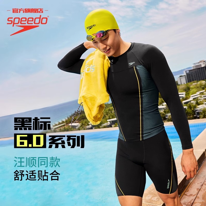 Speedo/速比涛 黑标6.0瞬影流光高弹防晒男子及膝泳裤 25年新款