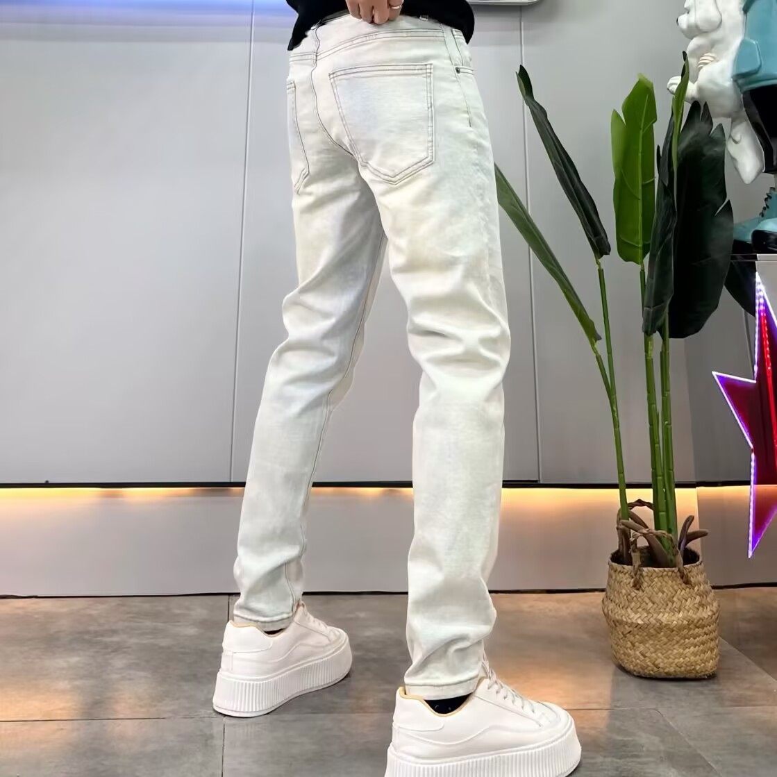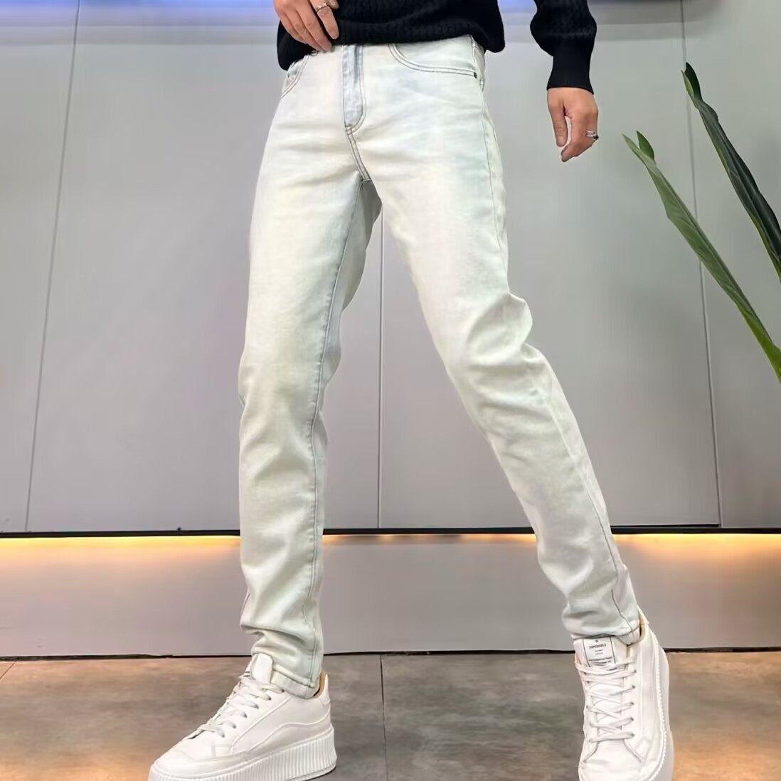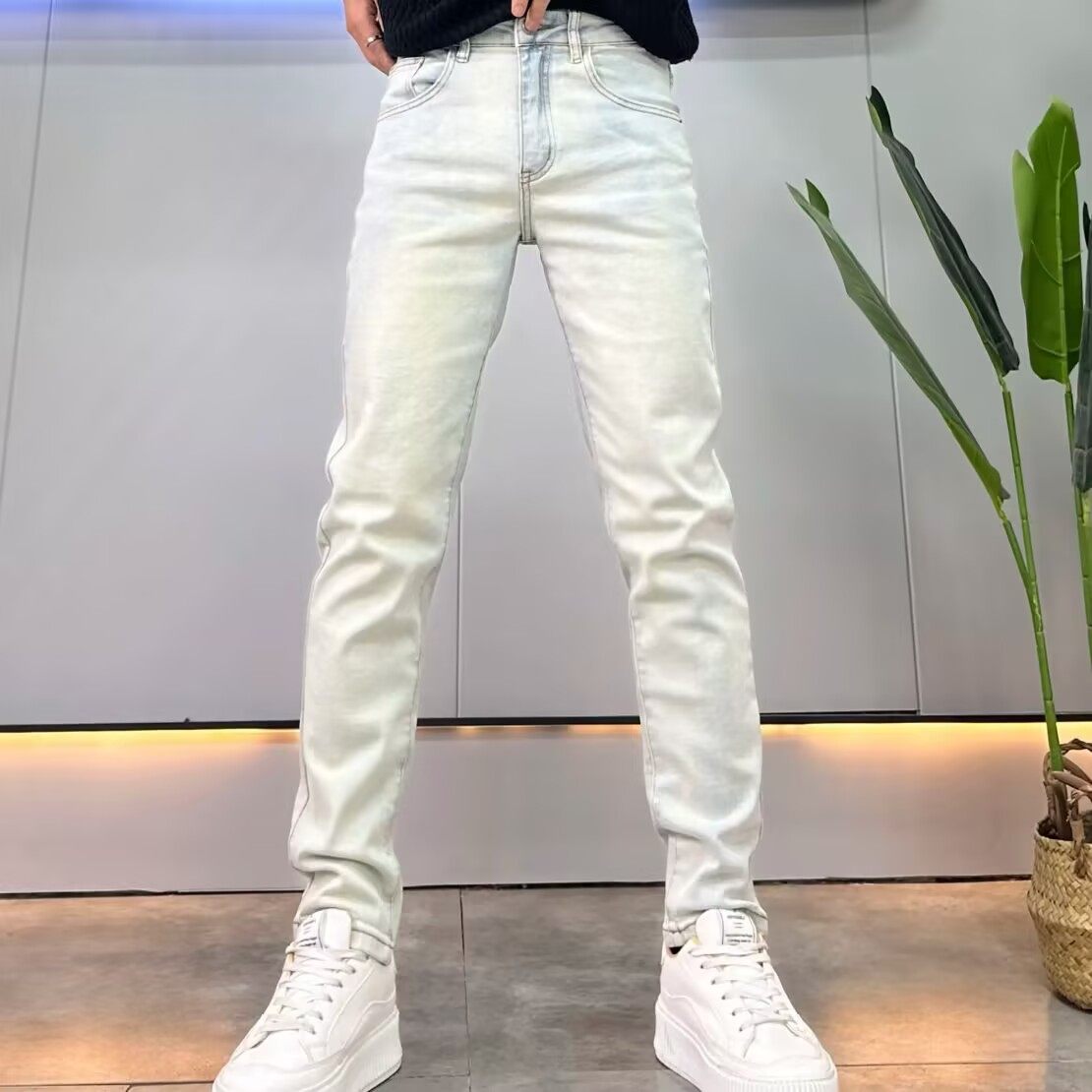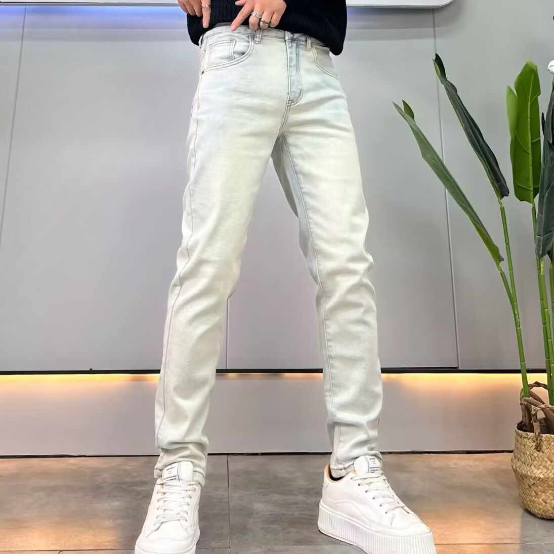 浅蓝色牛仔裤男修身小直筒新款韩版潮流简约净版休闲小脚九分裤子
